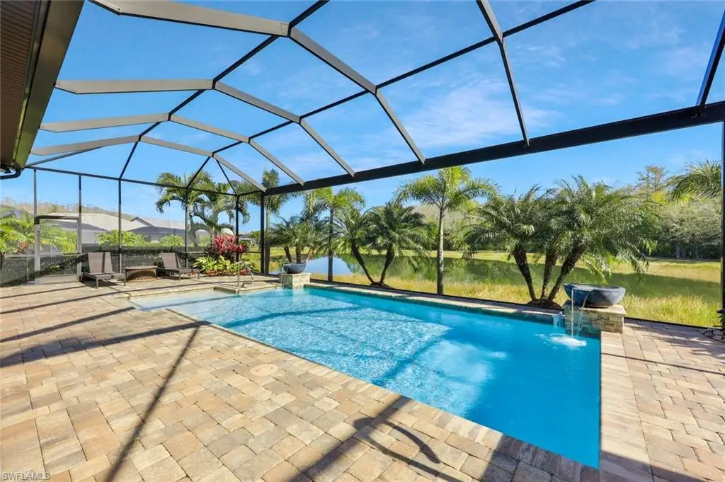 Enjoy the perfect combination of privacy and elegance in this beautiful Pinnacle model Single Family Home located in the Pulte community of Corkscrew Shores! Quietly located near the end of the street, there are many extras and upgrades to this gorgeous 3 Bedroom + Den/3 Bath home which features a peaceful lake and nature preserve view. The owners have updated the entire screen enclosure adding a panoramic picture window panel, upgraded the HVAC system, and re-surfaced the garage with an epoxy floor. Other upgrades include a well appointed outdoor kitchen, hurricane impact resistant doors and windows, heated saltwater pool, above ground spa, custom cabinetry in the gourmet kitchen, designer landscape lighting, and an extended 3 car garage. (4 ft.) Corkscrew Shores is a 24 hour gated community with award winning amenities including tennis, pickleball, bocce, fitness center, walking, biking, kayaking, and a fishing pier. There are no CDD fees and RSW airport, Miromar shopping/dining, and Florida Gulf Coast University are all close by.