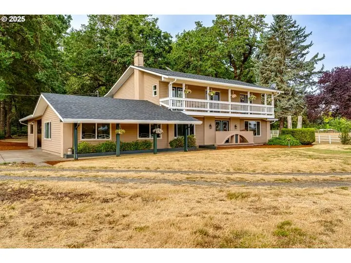 Discover the perfect blend of country charm and modern convenience at 26718 Cantrell Rd! Just 12 minutes from town, this serene country retreat offers sweeping views of 26 acres of pastureland, a seasonal creek, two ponds, grazing cattle, and majestic oak trees.This beautifully updated home offers nearly 3,000 sq ft of living space with 5 bedrooms, including a versatile large bedroom on the main level with a private entrance—ideal for guests, multi-generational living, or short-term rental opportunities. Inside, enjoy a bright, open layout featuring an updated kitchen with granite countertops, tile backsplash, and new stainless steel appliances. Expansive balconies span the upper level, accessible from two bedrooms and providing peaceful views of the surrounding countryside. The spacious primary suite includes its own balcony, a double vanity, and a large tiled walk-in shower. The property is ready for all your hobbies and rural lifestyle needs with a 36x96 barn offering RV and equipment storage plus open covered space for livestock, and a 40x60 shop with power, ample storage, built-ins, and a heated storage room. Whether you’re dreaming of a hobby farm, homestead, or simply a peaceful country lifestyle, this property delivers—with a brand-new roof just installed.