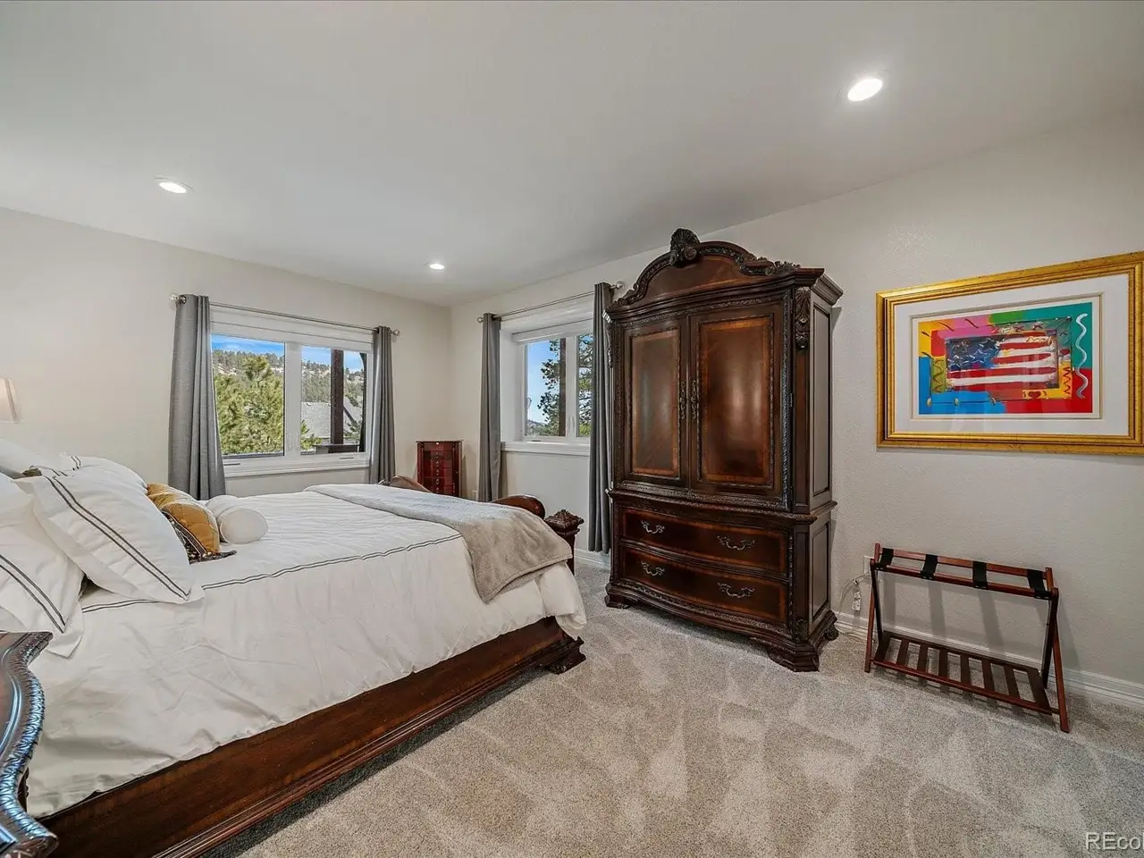 Exceptional value compared to other homes in the area. The perfect blend of timeless luxury, modern comfort, and natural serenity, this breathtaking five-bedroom, five-bathroom home in the foothills offers it all. Nestled among the trees on a peaceful cul-de-sac, yet conveniently located near essential amenities. From the moment you enter, the attention to detail is clear with gleaming hardwood floors, soaring ceilings, and a stunning great room anchored by a two-story stone fireplace sets the tone for relaxed elegance. The heart of the home is its gourmet chefs kitchen, featuring Thermador appliances, a six-burner range, wall oven, beverage cooler, ice maker, and warming drawer. A spacious island, walk-in pantry, and butlers pantry make this kitchen ideal for cooking, hosting, and everyday life. Outdoor living is just as refined, with a large entertaining deck equipped with built-in heaters and expansive views. Inside, the primary suite is a luxurious retreat complete with a sitting area, a spa-inspired remodeled bathroom, and a walk-in closet. A second guest bedroom has been thoughtfully converted into an additional dressing room, ideal for the fashion enthusiast. Upstairs, a cozy loft offers the perfect reading nook, while the fully finished lower level is an entertainers dream, complete with a home theater, bar, pool table, wine closet, and a guest suite. Bonus spaces include a home gym or game area, as well as a private patio with a dog run. Additional upgrades include newer A/C units, furnaces with humidifiers, water heaters, and energy-efficient windows. The oversized three-car garage provides ample storage for vehicles and gear. This property is a wonderful find, offering cozy winter evenings, sunny summer days, starry skies, and deer sightings. Bergen Park shops and restaurants are close by. Roughly 30 min to Denver, 37 min to Tech Center, and 16 min to the delightful village of Evergreen. Sellers have already relocated. List of updates in documents.