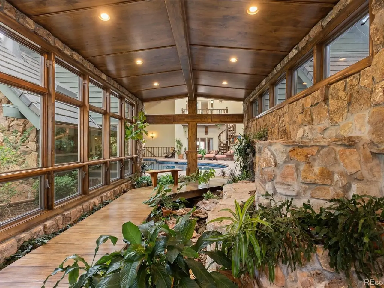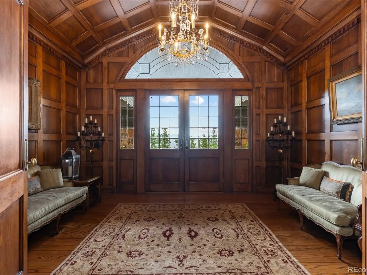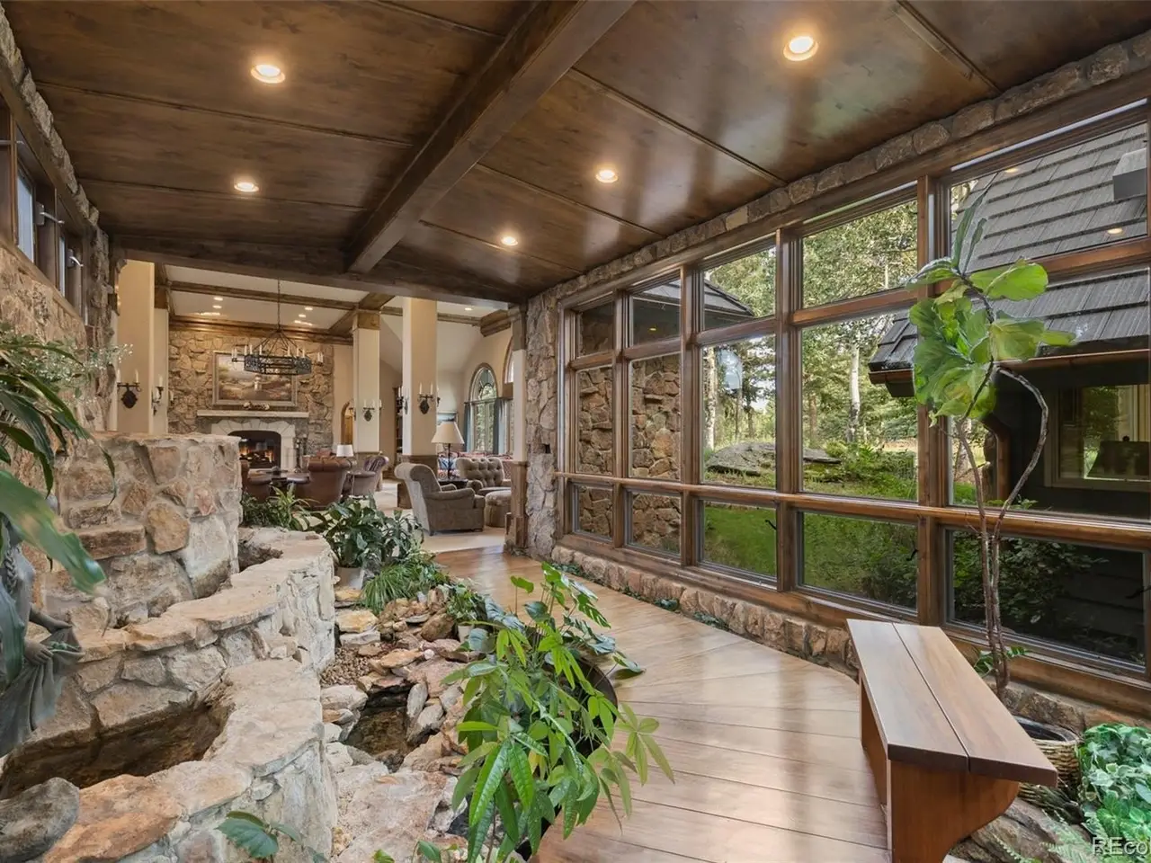 Perched atop two lots comprising 14.5 acres on the pinnacle of Soda Creek, 1275 Silver Tip Lane is the quintessential Colorado property. It offers the utmost in privacy and seclusion - an estate surrounded by mature foliage, bands of aspens and towering pines. Easy access to downtown Evergreen, an hour to top ski resorts or DIA and only 30 minutes to downtown Denver make this retreat ideal for those seeking all that Colorado has to offer. Ten private patios, tiered terraces, gas firepit and fireplaces, an outdoor bbq and bar, and two fully fenced acres all offer views that are magnificent and seemingly endless. The home’s exquisite craftsmanship and unique features are unparalleled and inimitable - handcrafted pecan wood is a marvel, an indoor swimming pool and spa, full-sized tennis court with basketball hoop and viewing deck, classic bar with temperature-controlled wine cellar, home theater, gym, indoor water feature with waterfalls…the list goes on. The grand staircase in the great room leads to the primary suite, positioned to offer some of the best views on the property from the private balcony or sitting area with floor-to-ceiling windows. Relaxation is top of mind while soaking in the tub watching the sunset. Three additional bedrooms offer similar comforts, each with its own 5-piece ensuite bathroom, walk in closet, mountain views and private patio. A guest suite is a haven of its own, providing accommodations such as a full bathroom, sitting area, and private patio. The kitchen’s limestone counters are illuminated by a glass atrium above. Two sinks, a professional grade La Cornue range, extra spacious paneled fridge and freezer, a walk-through pantry, and large island add ease and elegance to daily life. Additional flex spaces offer room for work, leisure or anything in between. This property delivers in every realm and will impress even the most discerning buyers.