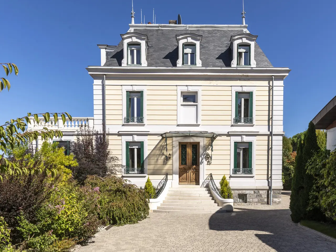 Discover this prestigious detached villa, built in the 1930s, embodying all the architectural elegance of its time. Tastefully and thoroughly renovated with respect for its original character, it seamlessly blends historic charm with modern comfort, all in an exceptional setting. With over 300 m² of living space (480 m² of usable area) and six en-suite bedrooms, this villa offers a generous and welcoming environment, ideal for hosting family and friends in a warm and inviting setting. Located just a few minutes’ walk from the town, the property offers breathtaking panoramic views of the lake, a beautifully landscaped and tree-filled garden, a swimming pool, and generous volumes spread across multiple levels. From the moment you enter, you’ll be captivated by the refined features: impressive ceiling heights, solid wood flooring, elegant moldings, and period wrought ironwork—all carefully preserved and enhanced during the renovation. Each room reflects the timeless character of the 1930s, while offering modern, high-end finishes. Exteriors : • Stunning panoramic lake view • Beautifully landscaped and mature garden • Swimming pool • Two large terraces and a balcony Interior – Designed for Comfort and Functionality: Ground floor : • Elegant entrance hall • Office, ideal for remote work or a professional activity • Spacious, independent kitchen • Bright and welcoming living room • Dining room • Guest WC with washbasin First floor: • A large master suite with dressing rooms, two private bathrooms, and a private lounge • An additional en-suite bedroom with private bathroom Second floor: • Four en-suite bedrooms, each with its own bathroom, including one with a balcony Fully finished basement: • Three rooms • Professional-grade kitchen • Offices • Multiple bathrooms • Utility rooms, workshop, boiler room, pool equipment room • Extensive storage and technical areas