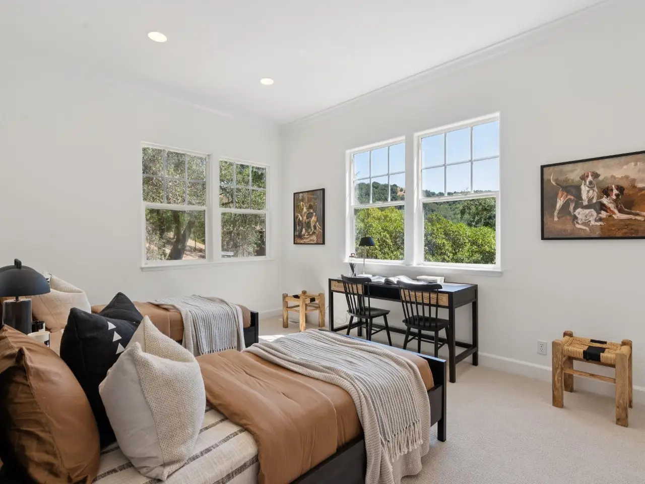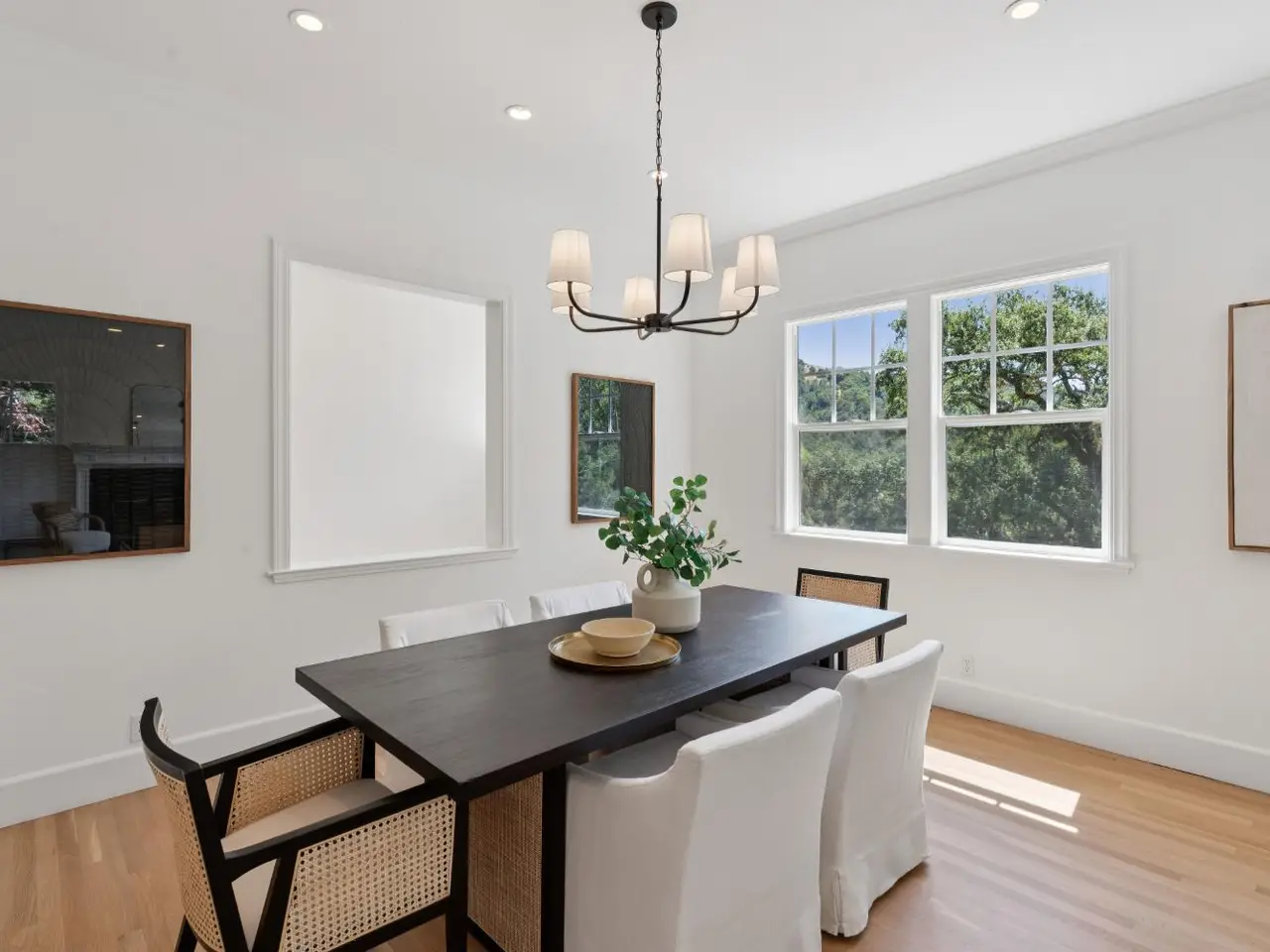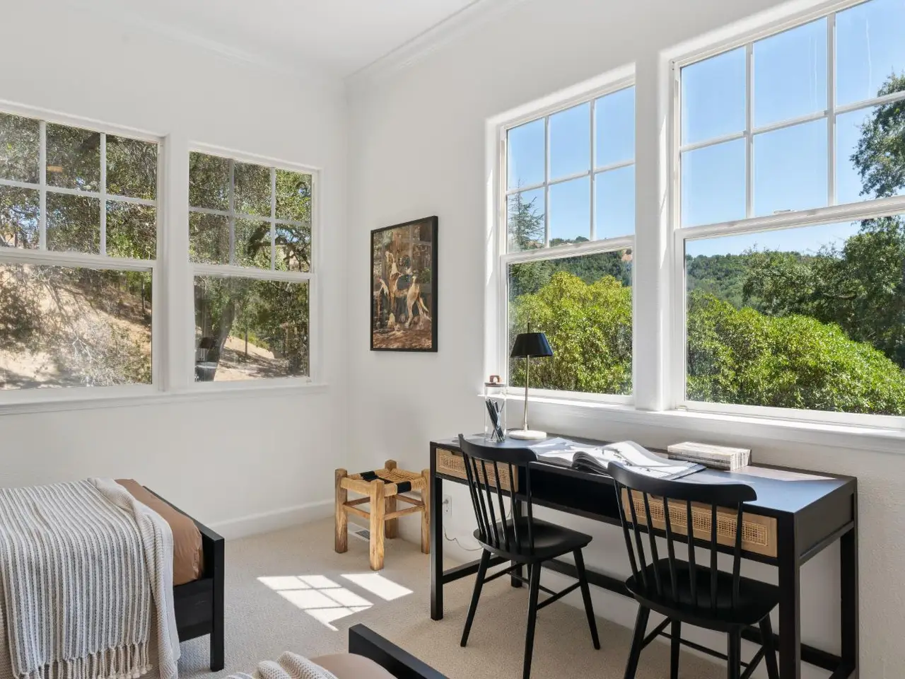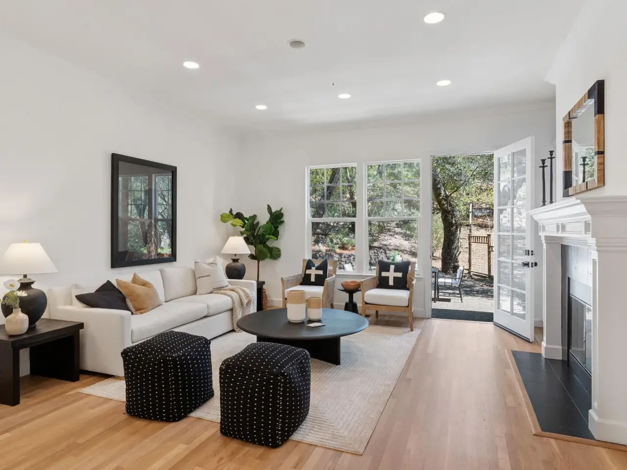 NEW PRICE!! Reduced $155k. Welcome to 4 Snowden Lane - an exceptional Craftsman style home in Fairfax Hills, a private enclave of just seven custom homes. Built in 1996, this 4Br, 3.5Ba residence provides 3,136sf of refined living on a 2 acre parcel. Enjoy 1/2 acre of mostly usable fenced yards, plus your own 1+ acre wooded hillside with mature trees and scenic trails. The entire home features 10 ft ceilings along with gorgeous white oak floors. The main level offers a dramatic living room with a wall of windows creating a light filled space and a fireplace. Chef's kitchen has new quartz counters, stainless appliances, double ovens, a large center island, and sunny breakfast area that opens to a spacious family room creating a great room with fireplace that flows to the back yard. The generous primary suite offers a spa-like bath, soaking tub, stall shower and enormous walk-in closet. Downstairs includes 3 bedrooms (one en-suite), 2nd full bath, den/office, and laundry room. Additional amenities: oversized 2 car garage with workbench, A/C, newer furnace, drought tolerant landscaping, new carpet and fresh paint. Located approx 1 mile from vibrant downtown Fairfax, yet tucked in a peaceful, serene, country like setting. Don't miss your opportunity to own this exceptional property!