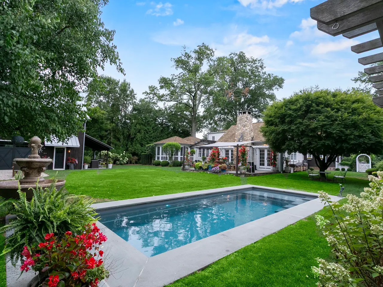 Nestled on one of Fairfield's most coveted streets where the beach, town, & coastal charm are just steps away- this extraordinary 1944 farmhouse is a rare offering that blends timeless New England character w/ every modern luxury. Once part of the Annie B. Jennings estate, this completely reimagined 4,038 sq. ft. residence sits on nearly 3/4 of an acre, an unheard-of expanse in the beach area. Behind its storybook facade lies an entertainer's paradise & a sanctuary for everyday living. Inside, you'll find 2 luxurious primary suites, a state-of-the-art chef's kitchen designed for culinary artistry, & a great room that seamlessly connects warmth, light, & space. The home also incl a private office, fitness studio, & home theatre-every detail curated for today's lifestyle. Step outside, & the magic continues. A courtyard dining area for 14 sets the stage for unforgettable gatherings. Heated saltwater pool, 8-person hot tub, & flagstone patio w/fpl invite relaxation under the stars. An impressive covered outdoor kitchen w/ seating for 6 makes al fresco living effortless & elegant. Completing this dream property is a 2-story barn feat addl garage & legal in-law aptmt-perfect for guests, extended family, or creative studio space. W/ 5 total fireplaces, & a 5 car garage, a workshop, & meticulous craftsmanship throughout, this home represents the pinnacle of Fairfield coastal living. Every inch tells a story. Every detail exudes grace. This is more than a home- it's a legacy property *New Barn/Legal in-law apartment adds additional 890 finished sq ft, and 1 bedroom and 1 full bath to the room count- as well as 3 additional garage spaces, and generous workshop area.