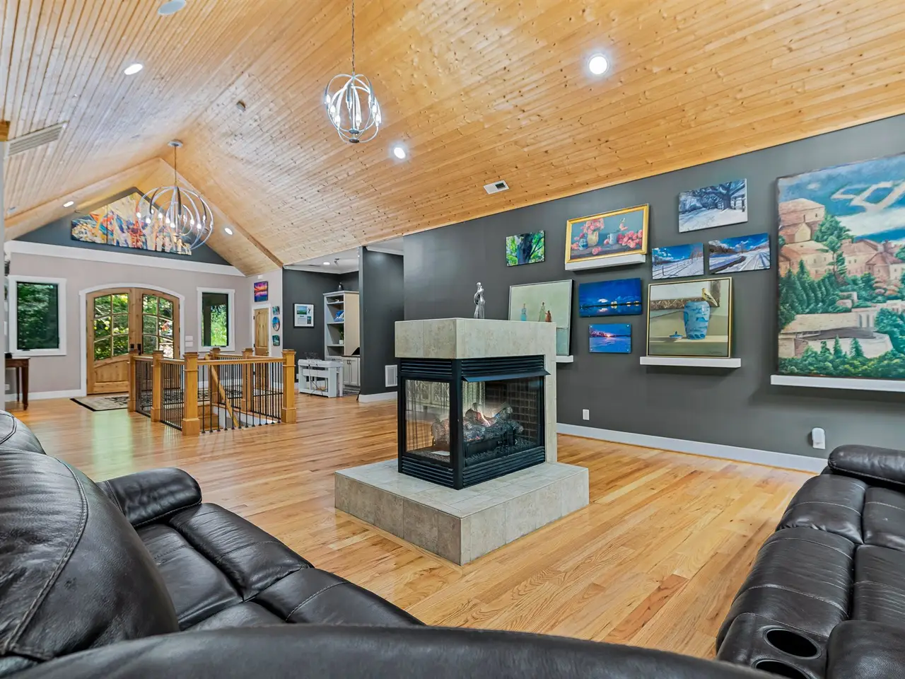 • Soaring ceilings with custom lighting