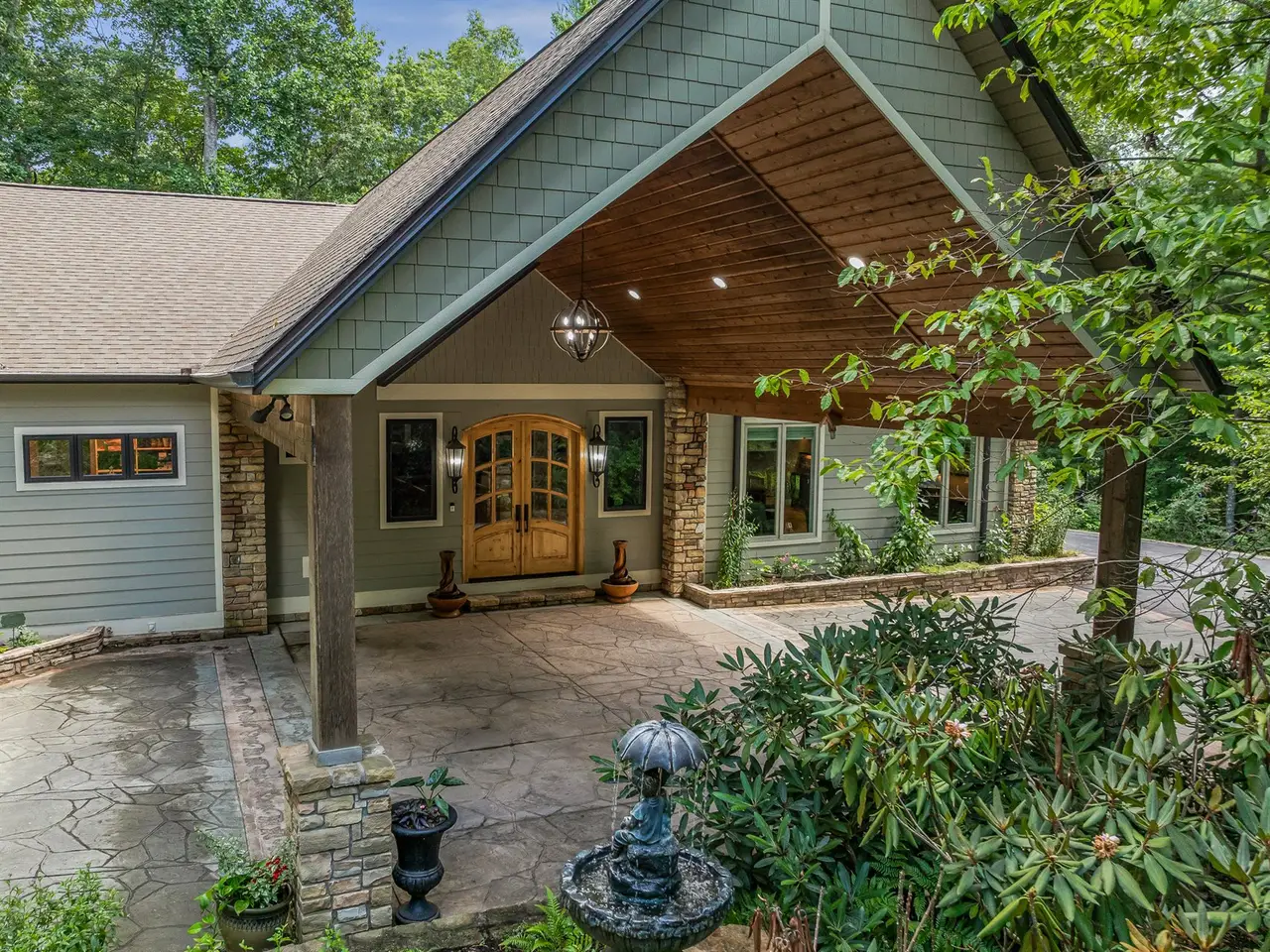Discover elevated mountain luxury at 105 Blackberry Lane a private retreat where sophistication meets serenity. Enter through a custom arched Italian door into a gallery-style foyer with soaring ceilings and custom lighting. Entertain effortlessly in the chef's kitchen, great room, and music nook and large second living area, or host memorable evenings on the tree-top covered deck with an Earth stone pizza oven and artisan wood-burning fireplace. Enjoy 2,400+ SF of outdoor living with a spa-grade hot tub, pergola grilling area, and forest view firepit deck. The primary suite offers a spa-inspired bath, private balcony, and infrared sauna. Most of the home was updated in 2016, and the separate storage building was also added in 2016. Curated gardens, stone paths, water features, and seamless indoor-outdoor living enhance the experience of this beautiful property. It's not just a home, it's a mountain sanctuary.