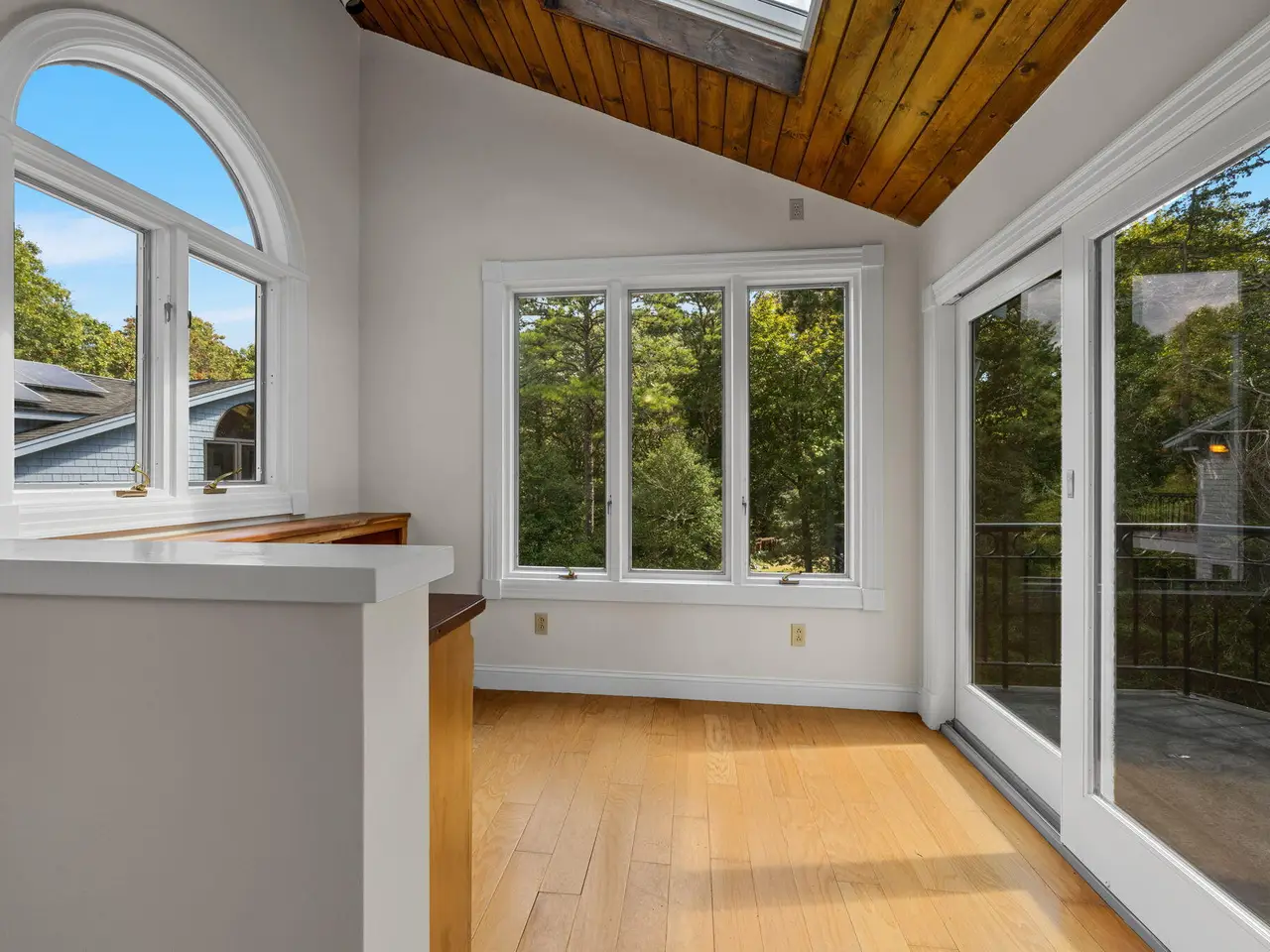 Falmouth - Nestled on over an acre beside 50+ acres of Audubon land, this one-of-a-kind custom contemporary offers privacy, light, and exceptional flexibility. The 4-bed, 3.5-bath home features soaring ceilings, 21 skylights, walls of glass invite nature in, while multiple decks and nooks connect you to the peaceful setting. The expansive primary suite includes a sitting area and private deck. A fully permitted accessory apartment--with private entrance, deck, and kitchen--offers income potential or ideal space for guests or multigenerational living. The commercial-grade garage with 3-phase power and car lift is perfect for serious hobbies or trades. Lovingly maintained and move-in ready, this property blends long-term value with lifestyle: minutes to beaches, boating, shopping, Mashpee Commons, and on/off Cape access. A rare opportunity to live, create, or invest in one of Falmouth's most serene settings.