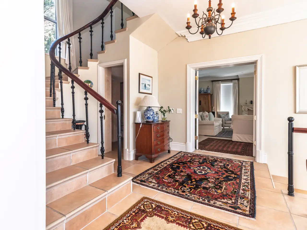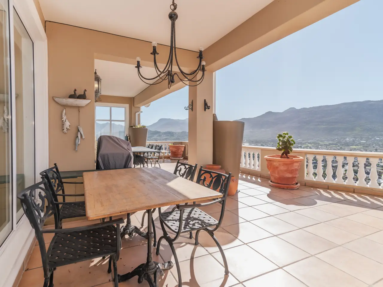 Situated on the mountainside, with stunning breathtaking views of both mountains and the ocean across False Bay. The elegant architectural touches along with warm, inviting interiors makes this far more than a home – it’s a retreat, a sanctuary, a place where timeless design meets natural elegance. Wake up to the sunrise over the ocean or unwind under the evening stars. The 4 generously sized bedrooms, each with their very own en suite bathroom, create ultimate comfort and privacy. The main and second bedroom have their own Juliet balconies, and a walk-through dressing room completes the elegance / luxury of the main bedroom. The living areas are north facing and comprise of a TV lounge and a formal lounge both with wool carpets and underfloor heating completed by a gas fireplace in the formal lounge. These areas open out on to an extra spacious patio with a splash pool and overwhelming views. The dining area leads into the kitchen, which is complete with induction hob, eye level oven, ample cupboards all of which can enhance and maximize your culinary wishes - an entertainer’s dream. This home has been meticulously maintained to a high standard and including floor tiles from Spain and roof tiles from Italy and the rockery gardens on the property are low maintenance. There is garaging for four cars and a security system that comprises of remote access to CCTV alarm system, indoor passives and external beams, intercom system, automated gate and garaging. Whether you are looking for a classic peaceful permanent residence or a luxurious vacation escape, this home offers the best of both worlds.
