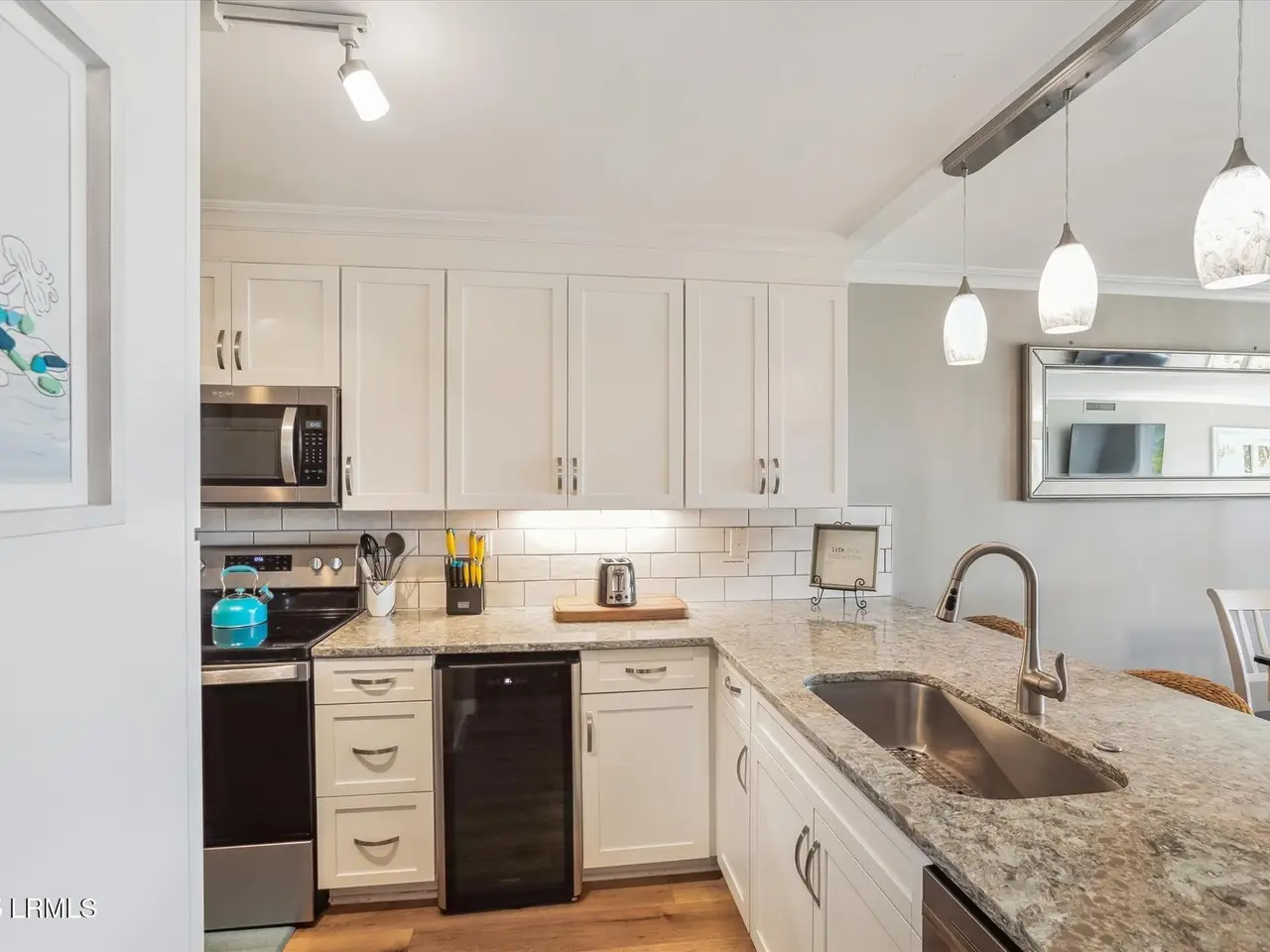 Expanded open kitchen Coastal decor throughout