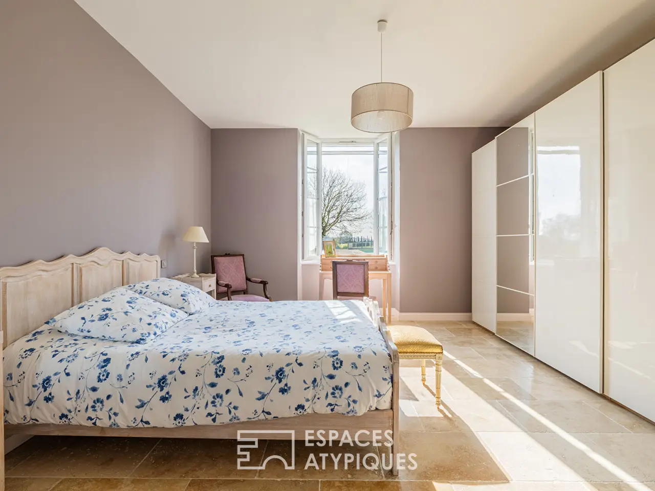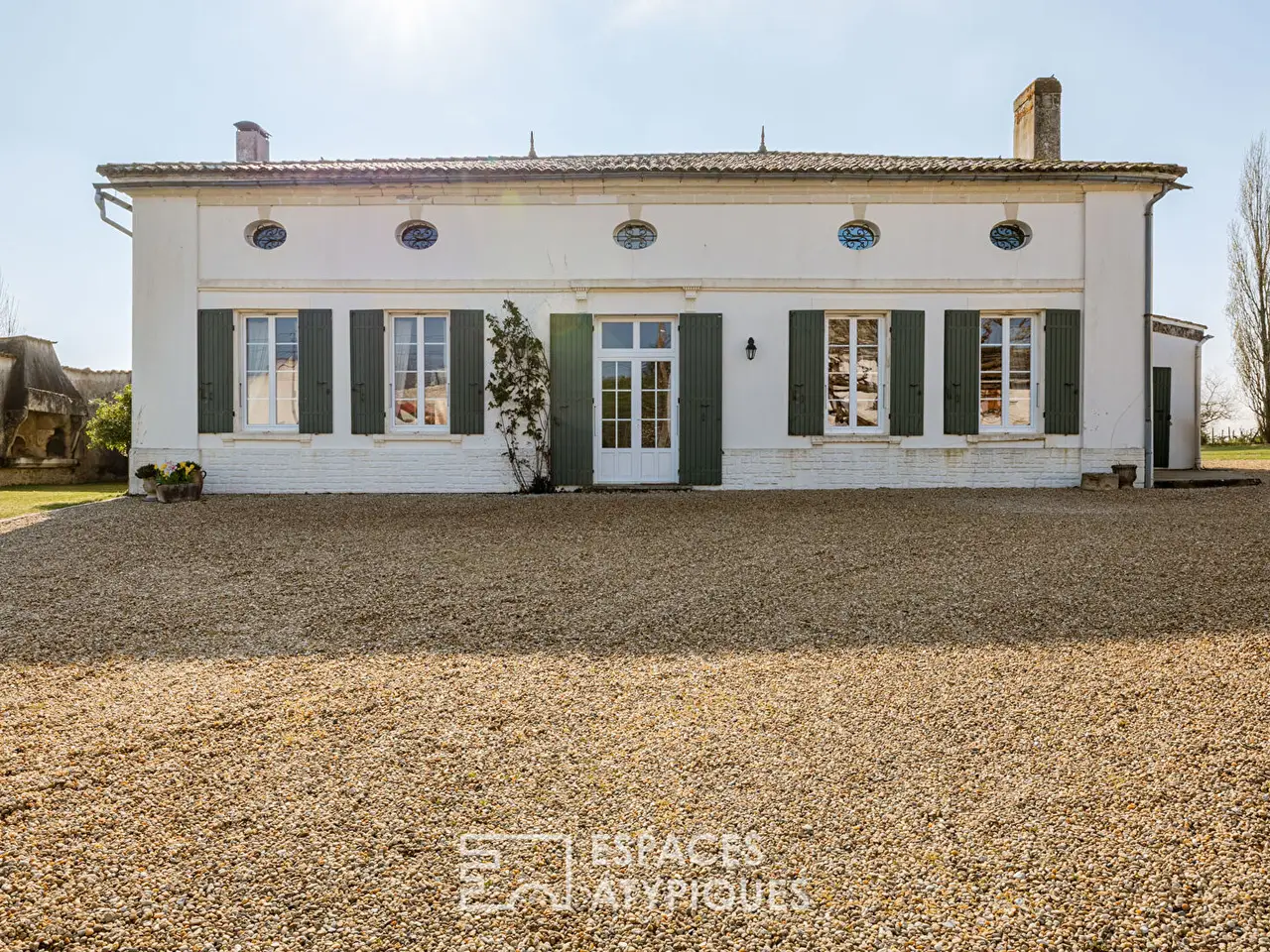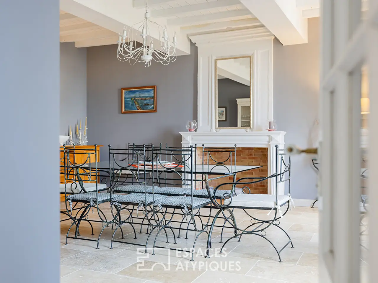 Built at the bend of a small street in the place called Floirac, a town in the heart of the Estuary a stone's throw from Mortagne-sur-Gironde, the property boasts a magnificent interior and exterior space.From the courtyard, the house stands proudly and incorporates the aesthetic codes of old Charente buildings, placing the property in an 18th-century era.The entrance is imposing. The checkerboard tiling and the splendid stone staircase leading upstairs fully contribute to the impression of entering a refined house, a sensation enhanced by high ceilings and great light. To the right and left of the entrance, two pleasant reception rooms stand out and perfectly represent the balance found in the renovation, between the preservation of an old style and the comfort of modernity.Thus, the fireplaces and stone walls sit alongside recent joinery and a travertine floor heated by a heat pump. Designed to be practical for everyday use, the ground floor was designed to preserve spaces dedicated to everyday living. A spacious office and two bedrooms with a shower room promote a single-story lifestyle, as does a functional laundry room.The kitchen, modern in its equipment and practical with its scullery, maintains this balance and leads to a particularly well-kept exterior.The upper floor constitutes the keystone of the family home. It offers six well-appointed bedrooms and two shower rooms, as well as a large games room. The exposed framework extends throughout the rooms with a unique aesthetic, preserving passage heights for easy movement. But this property has other assets to complete its versatility.An outbuilding of over 50 m2, converted into a one-bedroom apartment and currently used as a gite, completes an already large capacity. Finally, a wine storehouse and a former stable form nearly 400 m2 of additional undeveloped outbuildings, which allow for future developments. Outside, the space also dominates with a garden of more than 6,500 m2 offering absolute calm and an unobstructed view of the vineyards.The large swimming pool surrounded by a beach is welcome to fully enjoy the landscaped garden and the tranquility of the place. A perfectly well renovated property with a large reception capacity, in a green setting close to the tourist sites of the Estuary and 30 minutes from Royan.ENERGY CLASS: B / CLIMATE CLASS: A. Estimated average amount of annual energy expenditure for standard use, established from the average energy prices for the years 2021, 2022 and 2023: between EUR2,790 and EUR3,820.REF. EALR1942Additional information* 13 rooms* 8 bedrooms* 1 bathroom* 2 shower rooms* Outdoor space : 6500 SQM* Property tax : 1 996 €Energy Performance CertificatePrimary energy consumptionb : 104 kWh/m2.yearHigh performance housing*A*104kWh/m2.year3*kg CO2/m2.yearB*C*D*E*F*GExtremely poor housing performance* Of which greenhouse gas emissionsa : 3 kg CO2/m2.yearLow CO2 emissions*3kg CO2/m2.yearA*B*C*D*E*F*GVery high CO2 emissionsEstimated average annual energy costs for standard use, indexed to specific years 2021, 2022, 2023 : between 2790 € and 3820 € Subscription IncludedAgency feesThe fees include VAT and are payable by the vendorMediatorMediation Franchise-Consommateurswww.mediation-franchise.com29 Boulevard de Courcelles 75008 ParisInformation on the risks to which this property is exposed is available on the Geohazards website : www.georisques.gouv.fr