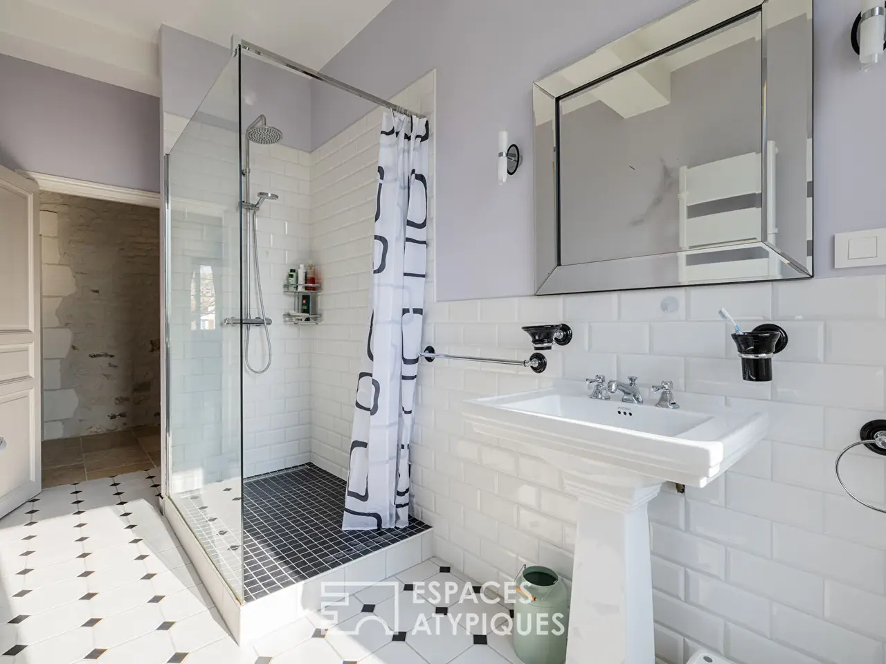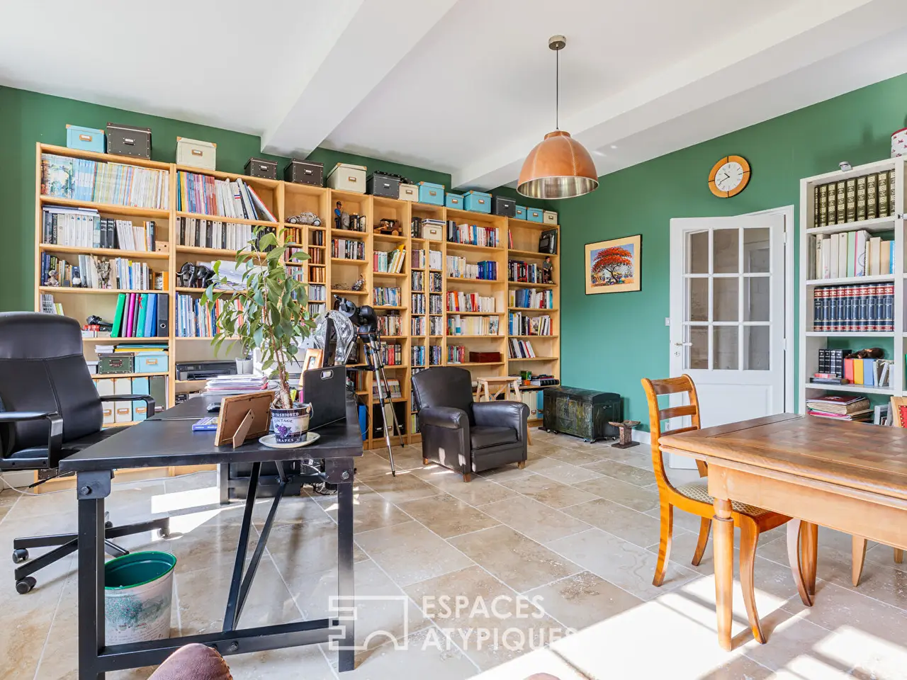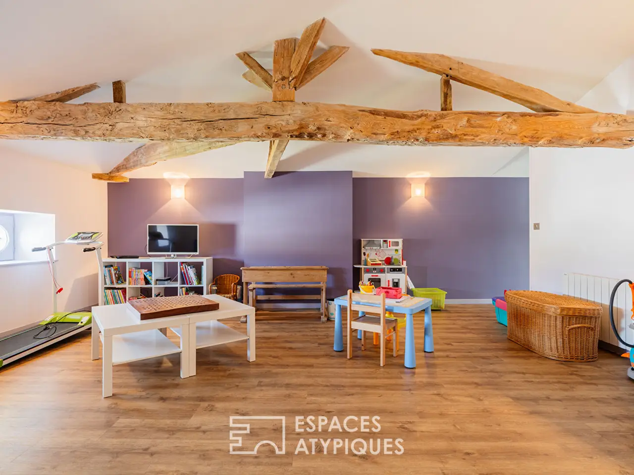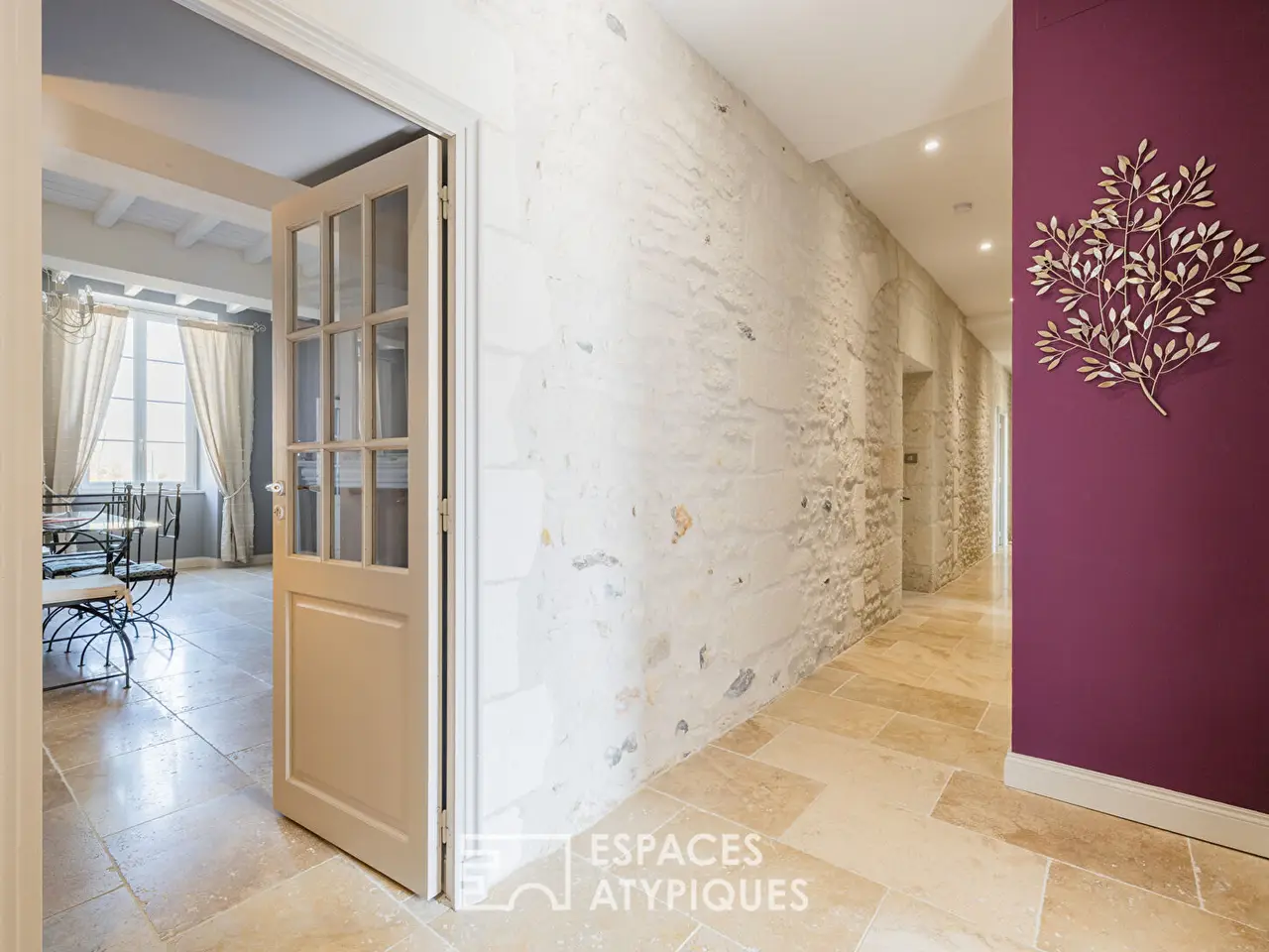 Built at the bend of a small street in the place called Floirac, a town in the heart of the Estuary a stone's throw from Mortagne-sur-Gironde, the property boasts a magnificent interior and exterior space.From the courtyard, the house stands proudly and incorporates the aesthetic codes of old Charente buildings, placing the property in an 18th-century era.The entrance is imposing. The checkerboard tiling and the splendid stone staircase leading upstairs fully contribute to the impression of entering a refined house, a sensation enhanced by high ceilings and great light. To the right and left of the entrance, two pleasant reception rooms stand out and perfectly represent the balance found in the renovation, between the preservation of an old style and the comfort of modernity.Thus, the fireplaces and stone walls sit alongside recent joinery and a travertine floor heated by a heat pump. Designed to be practical for everyday use, the ground floor was designed to preserve spaces dedicated to everyday living. A spacious office and two bedrooms with a shower room promote a single-story lifestyle, as does a functional laundry room.The kitchen, modern in its equipment and practical with its scullery, maintains this balance and leads to a particularly well-kept exterior.The upper floor constitutes the keystone of the family home. It offers six well-appointed bedrooms and two shower rooms, as well as a large games room. The exposed framework extends throughout the rooms with a unique aesthetic, preserving passage heights for easy movement. But this property has other assets to complete its versatility.An outbuilding of over 50 m2, converted into a one-bedroom apartment and currently used as a gite, completes an already large capacity. Finally, a wine storehouse and a former stable form nearly 400 m2 of additional undeveloped outbuildings, which allow for future developments. Outside, the space also dominates with a garden of more than 6,500 m2 offering absolute calm and an unobstructed view of the vineyards.The large swimming pool surrounded by a beach is welcome to fully enjoy the landscaped garden and the tranquility of the place. A perfectly well renovated property with a large reception capacity, in a green setting close to the tourist sites of the Estuary and 30 minutes from Royan.ENERGY CLASS: B / CLIMATE CLASS: A. Estimated average amount of annual energy expenditure for standard use, established from the average energy prices for the years 2021, 2022 and 2023: between EUR2,790 and EUR3,820.REF. EALR1942Additional information* 13 rooms* 8 bedrooms* 1 bathroom* 2 shower rooms* Outdoor space : 6500 SQM* Property tax : 1 996 €Energy Performance CertificatePrimary energy consumptionb : 104 kWh/m2.yearHigh performance housing*A*104kWh/m2.year3*kg CO2/m2.yearB*C*D*E*F*GExtremely poor housing performance* Of which greenhouse gas emissionsa : 3 kg CO2/m2.yearLow CO2 emissions*3kg CO2/m2.yearA*B*C*D*E*F*GVery high CO2 emissionsEstimated average annual energy costs for standard use, indexed to specific years 2021, 2022, 2023 : between 2790 € and 3820 € Subscription IncludedAgency feesThe fees include VAT and are payable by the vendorMediatorMediation Franchise-Consommateurswww.mediation-franchise.com29 Boulevard de Courcelles 75008 ParisInformation on the risks to which this property is exposed is available on the Geohazards website : www.georisques.gouv.fr