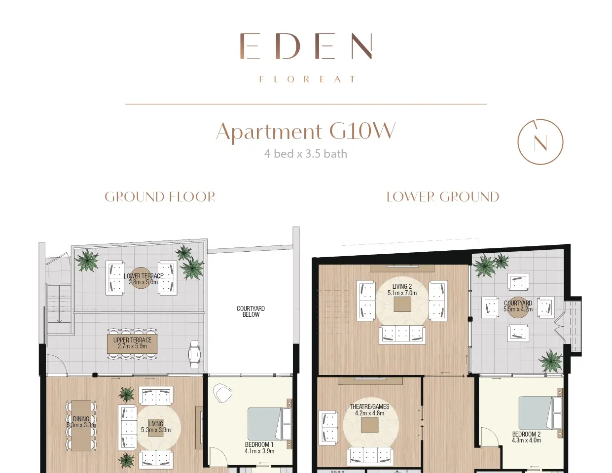 Welcome to Apartment G10 - where refined luxury meets spacious, effortless living. This meticulously designed four-bedroom, three-and-a-half-bathroom residence spans two expansive levels and offers the comfort of a house with the convenience of apartment living in the exclusive Eden complex. Grand Design, Effortless Flow Step into the upper-level open-plan living and dining area, where soaring 3.6-metre ceilings and full-height double-glazed doors flood the space with natural light. Centre stage is the gourmet kitchen, a chef's dream. Featuring premium Gaggenau appliances, an integrated Fisher & Paykel fridge-freezer, an abundance of bench space as well as the addition of a tucked-away scullery for seamless entertaining. Outdoor Living Redefined Beautiful connectivity to indoor/outdoor living has been achieved with 2 stunning alfresco entertaining areas. A generous upper level terrace, flowing out from the living area and elevated from the street, provides a fabulous entertainment zone. With its Northern aspect and tree lined vista it is a perfect space to enjoy with family and friends or to simply unwind with an evening drink, taking in the sunset over the Park. Downstairs, a private courtyard creates an additional zone to relax and enjoy outdoors. Retreat-Style Bedrooms Enjoy the privacy of a generously proportioned master suite on the upper floor, complete with a large walk-in robe and a luxuriously appointed ensuite with its own bath. A separate powder room on this level adds convenience for guests. On the lower floor, a second generous master suite with direct courtyard access offers flexibility for guests or multigenerational living. Two additional bedrooms, each with their own walk-in robes, are serviced by a central bathroom. Flexible Living for the Whole Family The lower level also houses a vast second living zone and a dedicated theatre/games room-ideal for movie nights, teenagers, or working from home. A well-appointed laundry, cellar/store room, and ample storage throughout ensure every need is met with style. Additional features include: • North facing, so an incredible abundance of natural light throughout the home. • Secure gate entrance, with pedestrian access direct to your home • Double glazed doors and windows with flyscreens • Zoned, reverse-cycle air conditioning • Fabulous separation and versatile floor plan with 3 separate living spaces and an additional study • Massive private double car garage (with its own garage door) and generous built-in storage A World-Class Lifestyle Awaits Living in Eden means access to an exceptional suite of amenities: a 25m pool, spa, sauna, gym, yoga studio, theatre, wine cellar, and sunset rooftop deck. All this, set beside Perry Lakes Reserve and just steps from Cup & Co café, with Floreat Forum, Claremont Quarter, and City Beach minutes away.