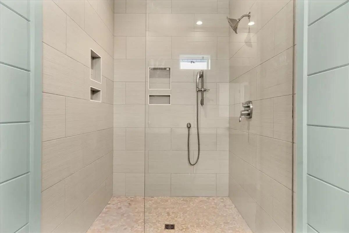 Gorgeous tiled showers with glass walls