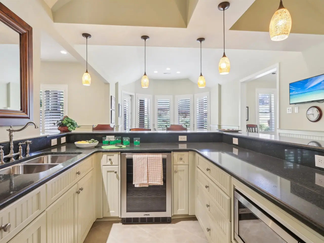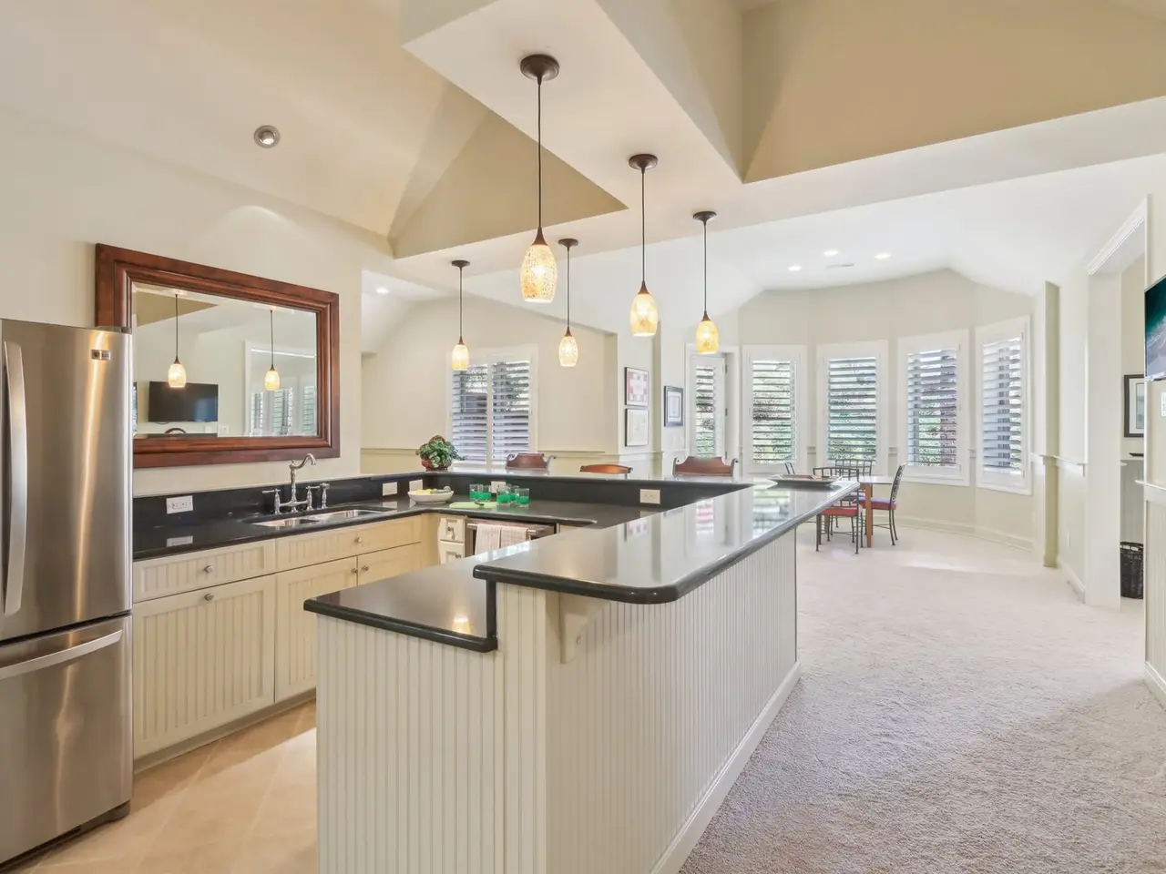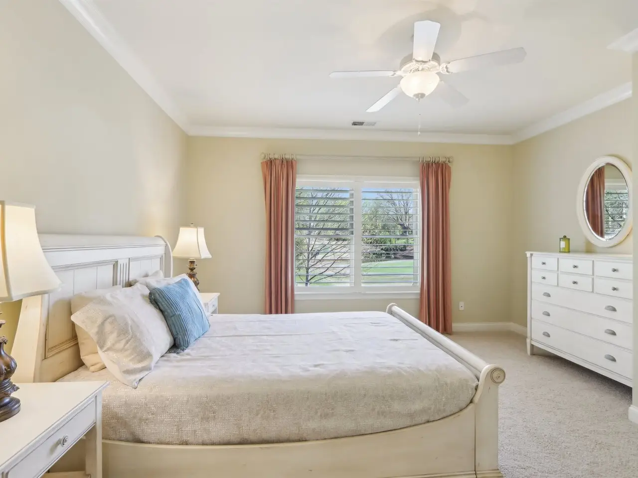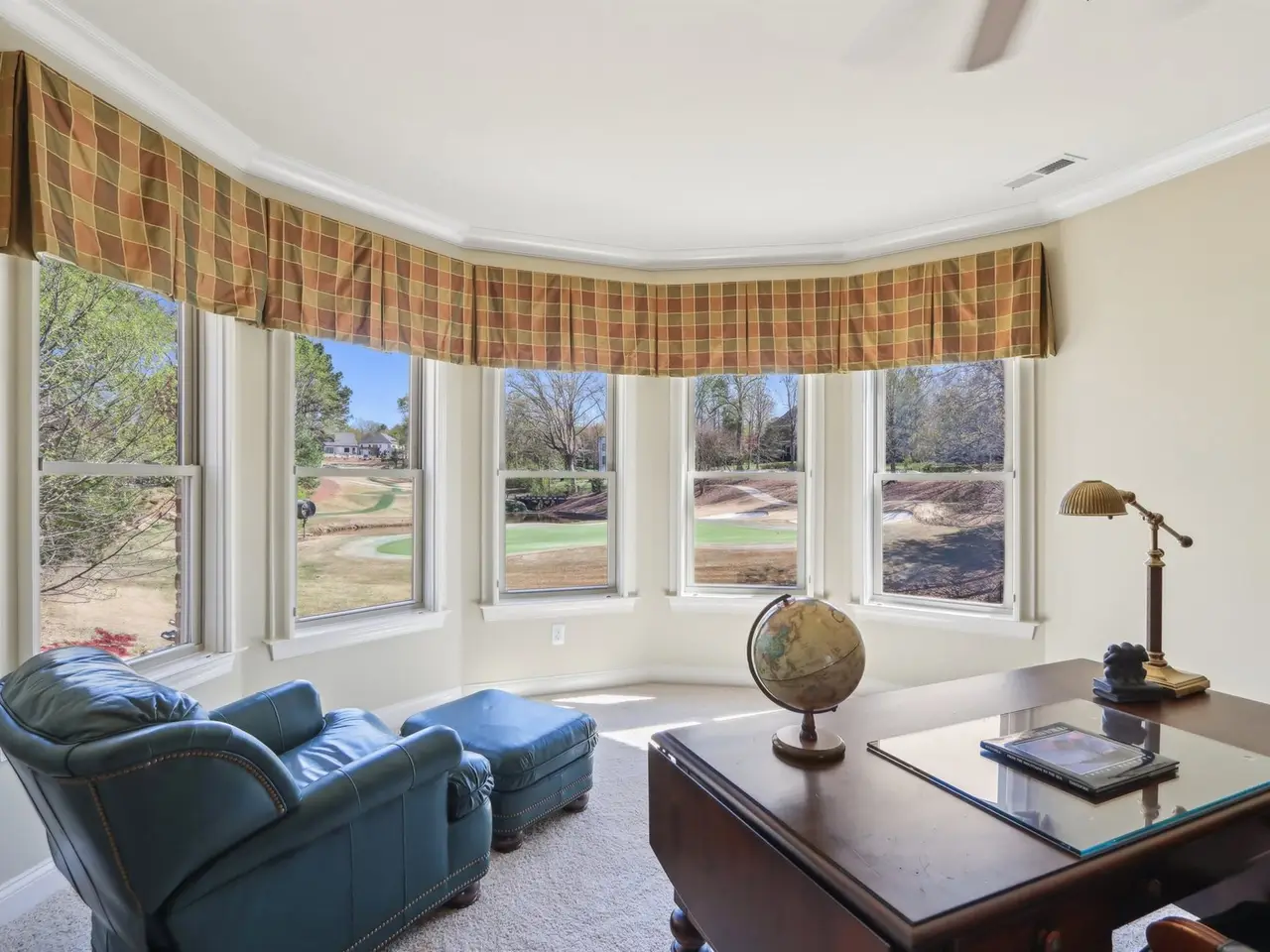 Amazing views of signature hole #15 from this immaculately maintained home. Fine details include heavy moldings, tall/vaulted/coffered/tray ceilings, 8 ft doors, custom plantation shutters, hydralic elevator, 2 fireplaces, built-in cabinets & surround sound. Primary bedroom on main w/ sitting area, 2 WIC & glamour bath. 2nd primary bedroom on main. Living rm w/ coffered ceiling, built-in's & gas fp. Great rm w/ vaulted ceiling, built-in's, gas fp & open to kitchen. Chef's kit w/ huge island, quartz & custom cab. 2nd fl w/ media/theater rm w/ built-in's, rec rm w/ wet bar, spacious secondary bedrooms w/ ensuite baths. BSMT w/ 11 ft ceilings & 8 ft doors, exercise rm, billiards rm, game rm w/ cabinets, arcade area, 2nd kitchen, full bath, card rm and 2 unfinished storage areas (one is perfect to finish for another bed w/ exterior access, perfect for multi-generational living). Updates include roof, 3 HVAC systems, water heater, lift station, irrigation, paint & leaf fitter gutters. WOW!