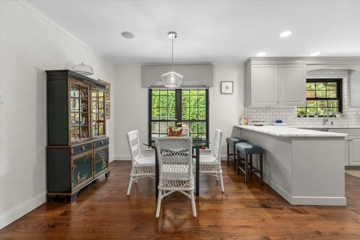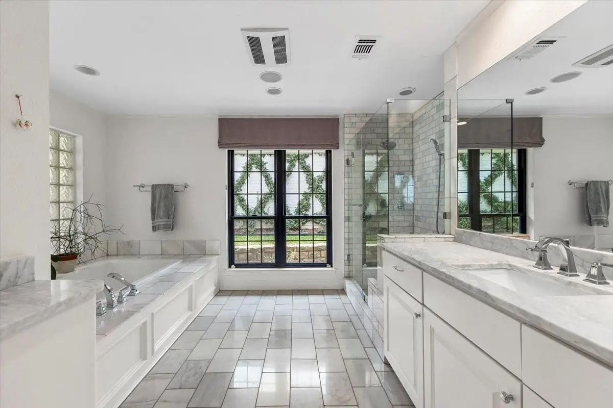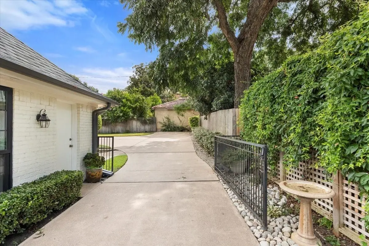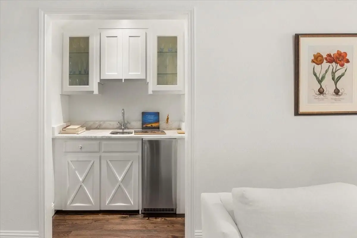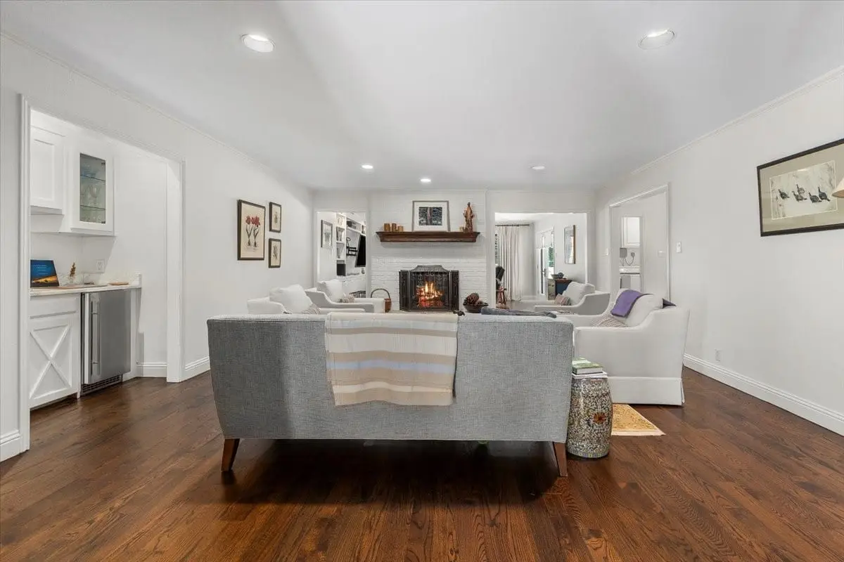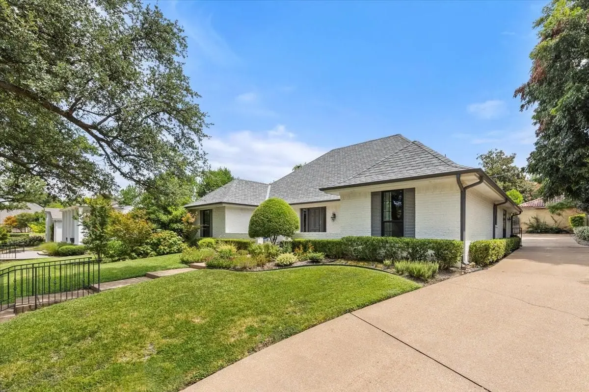 Easy living with an elegant feel! This home is move-in ready with its light colors, beautiful gleaming wood floors, and marble counters in the kitchen and baths. Living room and family room share a see-through fireplace so each area can enjoy. The living room has a wet bar and wall of built-ins. The family room also has built-ins and is made for comfort and relaxation. Adjacent is the charming kitchen which includes a breakfast bar and built-in refrigerator, and very spacious breakfast area. Dining room is perfect for family or dinner guests. Two bedrooms are down including the primary suite which has a great sitting area and beautiful bath with marble and lots of light! Two additional bedrooms and a bath are located on the second level. The exterior includes a gated driveway and two-car garage. The home sits on an elevated lot with great views of the tree-lined street with sidewalks and the location is perfect as it is near TCU, Colonial Country Club, and great shopping!