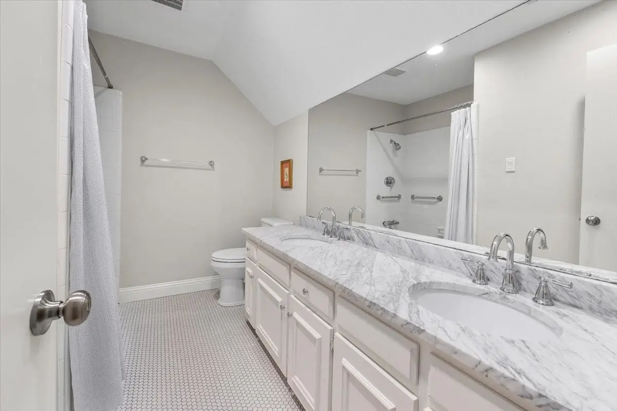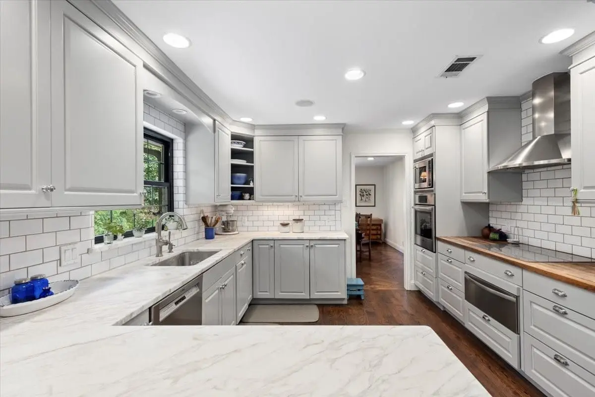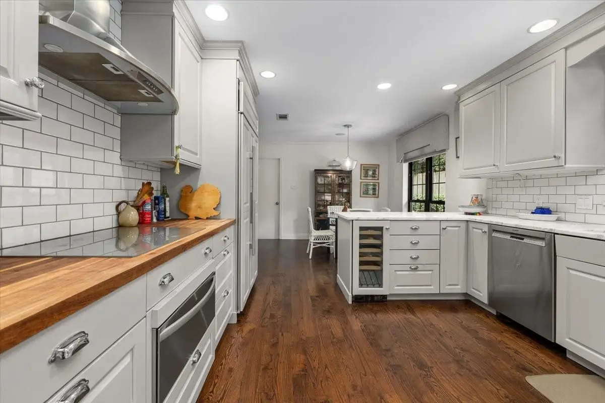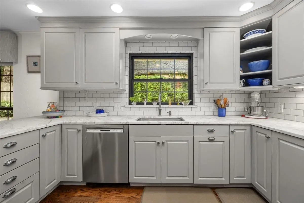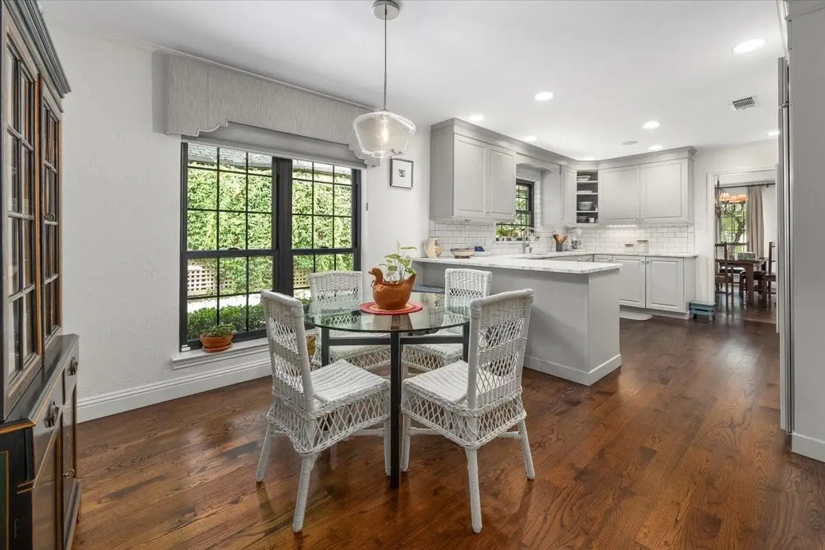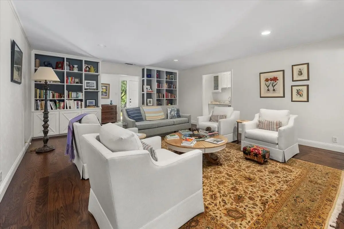 Easy living with an elegant feel! This home is move-in ready with its light colors, beautiful gleaming wood floors, and marble counters in the kitchen and baths. Living room and family room share a see-through fireplace so each area can enjoy. The living room has a wet bar and wall of built-ins. The family room also has built-ins and is made for comfort and relaxation. Adjacent is the charming kitchen which includes a breakfast bar and built-in refrigerator, and very spacious breakfast area. Dining room is perfect for family or dinner guests. Two bedrooms are down including the primary suite which has a great sitting area and beautiful bath with marble and lots of light! Two additional bedrooms and a bath are located on the second level. The exterior includes a gated driveway and two-car garage. The home sits on an elevated lot with great views of the tree-lined street with sidewalks and the location is perfect as it is near TCU, Colonial Country Club, and great shopping!