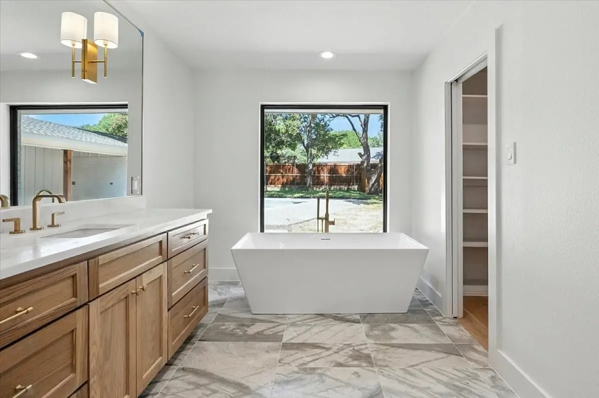Located on a half-acre lot beneath mature oaks in the heart of Overton Park, this fully renovated mid-century modern home remodeled by Encore Builders offers the perfect blend of timeless architecture and modern design. Clean lines, expansive windows, and an open layout create a bright, airy feel throughout. Inside, you'll find wide-plank wood floors, high ceilings, and a designer kitchen with custom cabinetry and premium appliances. A sleek bar area and spacious living areas provide great flow for everyday living and entertaining. The primary suite features backyard access, a luxurious bath with dual showers, a soaking tub, and a generous walk-in closet. Out back, enjoy a private setting with a pool and plenty of space for gathering with family and friends. Just a short walk to Overton Park Elementary and minutes from shopping and dining in Clearfork.