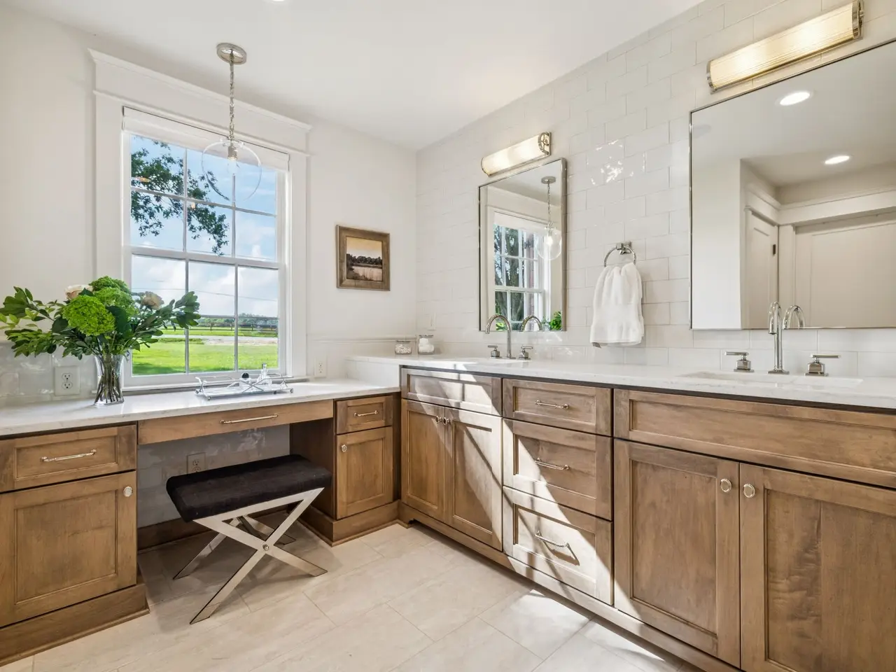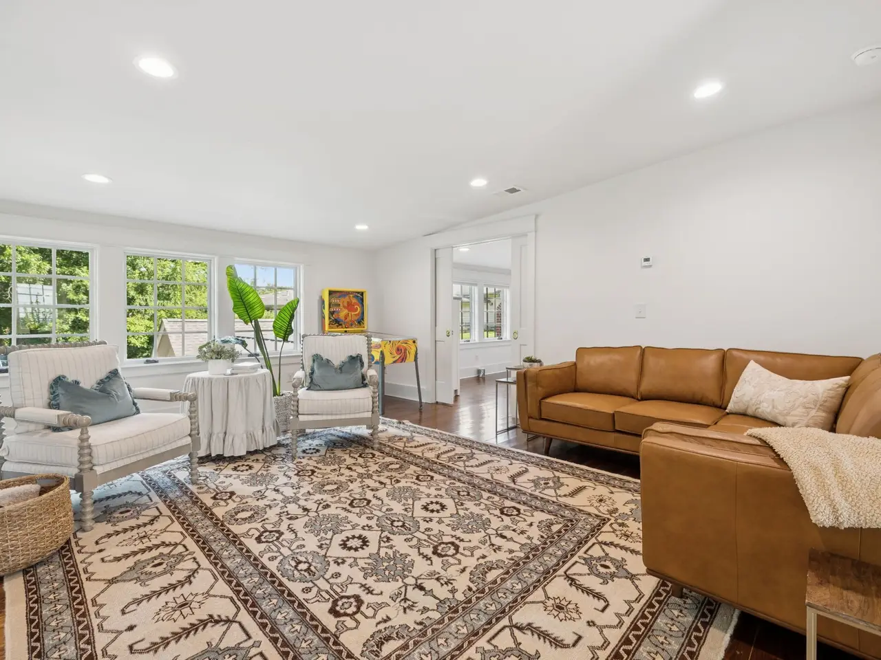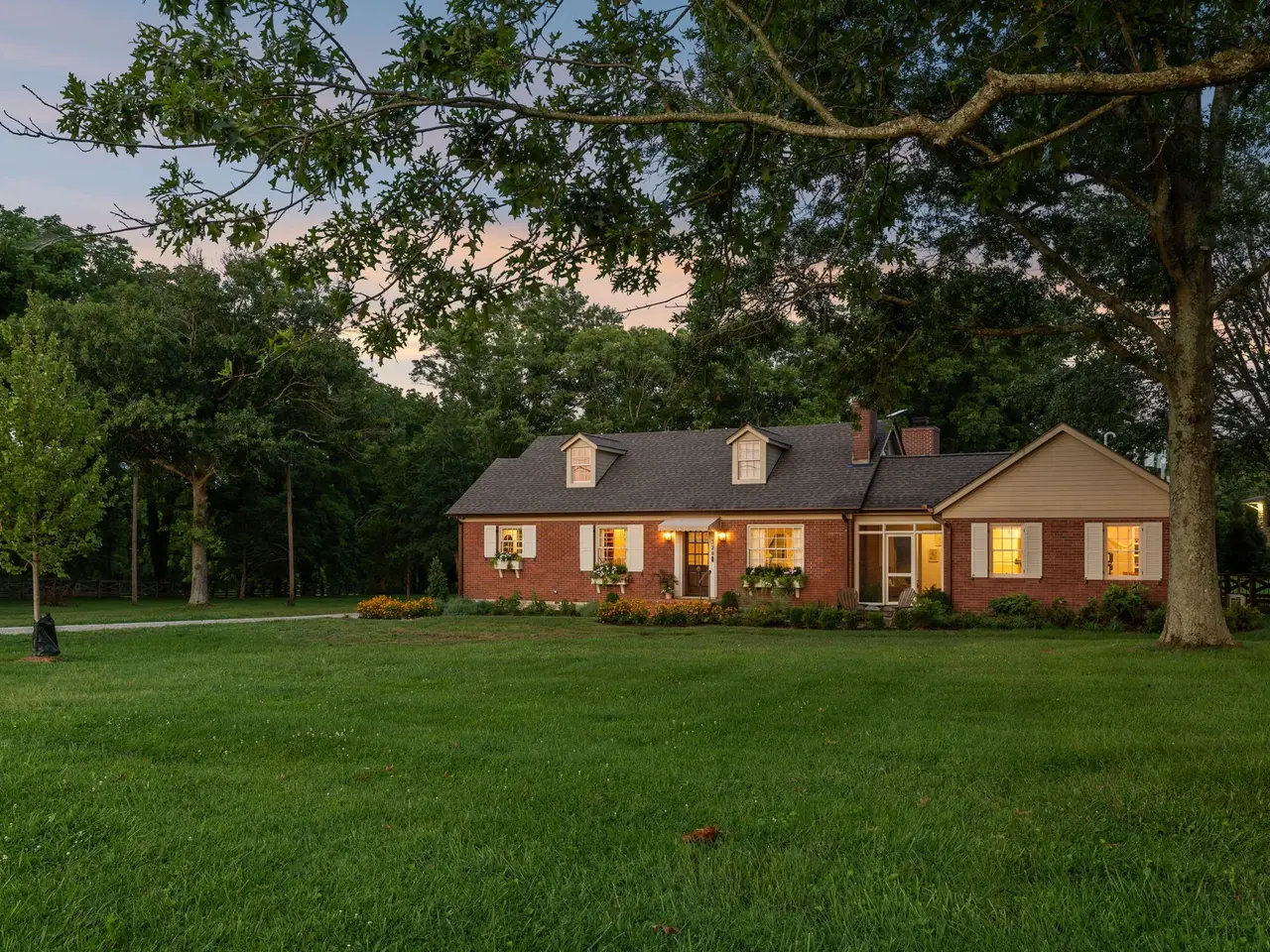 Experience timeless charm and modern elegance in this stunning brick home, perfectly nestled on a mature, tree-lined 2.83-acre lot in the heart of Williamson County. Enjoy mainly one-level living with an open-concept floor plan that is both functional and beautiful, featuring hardwood floors throughout and a bright, airy interior. The chef's kitchen is a true showstopper--flooded with natural light from four skylights and designed with seamless paneled appliances, a spacious island, cozy breakfast nook, and wet bar. Two fireplaces add warmth and ambiance to the thoughtfully designed living spaces. The main level offers two bedrooms, two full bathrooms, and a powder bath, while the upper level includes a third bedroom, two full baths, and a versatile rec room--ideal for guests or a private retreat. Outdoor living is just as impressive with a charming screened-in front porch, a large covered back porch, and a serene patio overlooking the pristine acreage. Located just minutes from Historic Downtown Franklin, across the street from the beloved Park at Harlinsdale Farm, and down the road from The Factory at Franklin, this home is zoned for top-rated Williamson County schools and offers the perfect blend of location, lifestyle, and land. A true Franklin gem!
