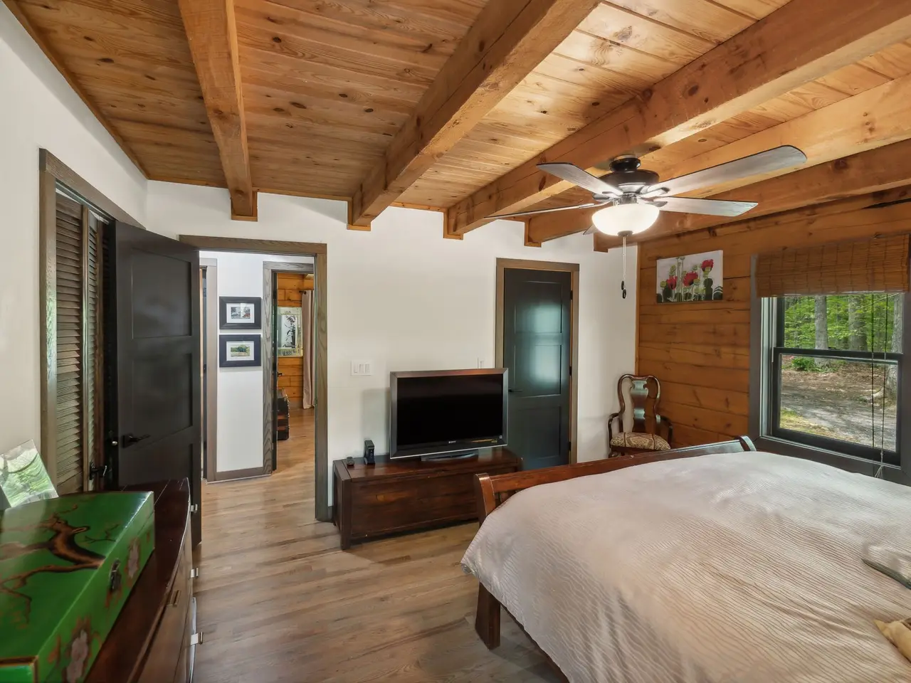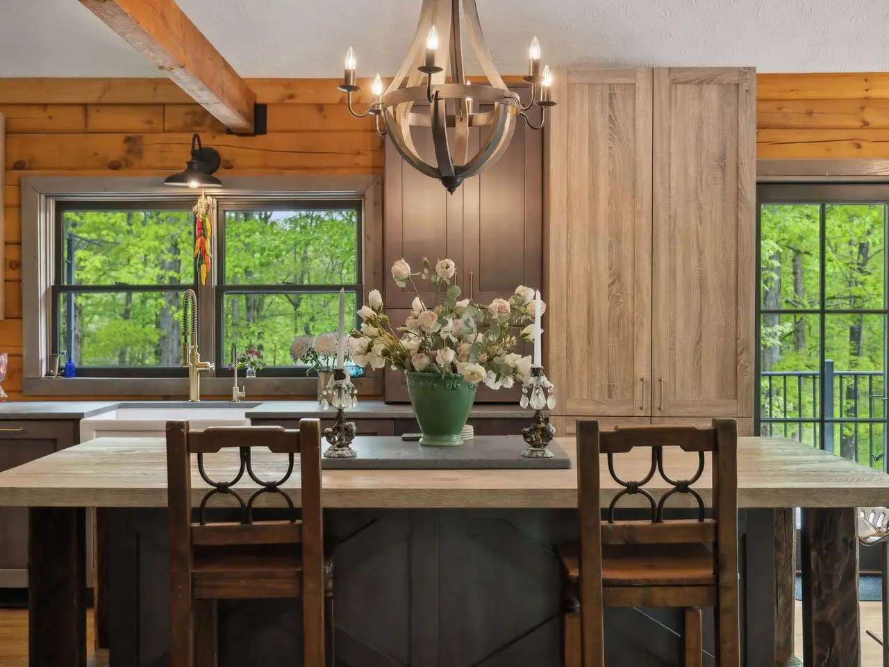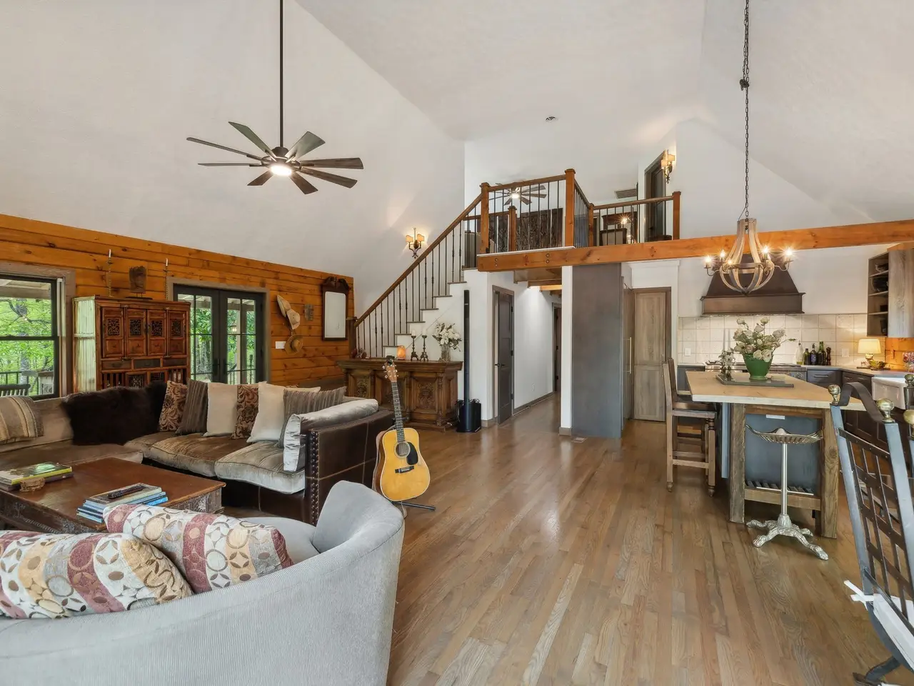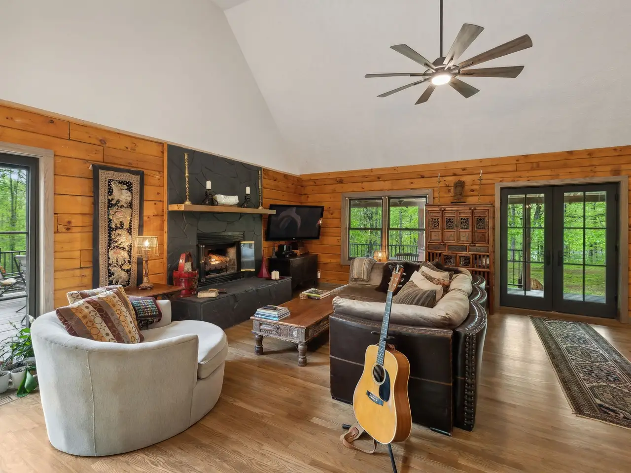 Incredible lake views!! Countryside serenity meets luxury living in this immaculately restored and fully renovated Leiper's Fork log home. Tucked into a coveted rural location in Middle Tennessee that rarely sees homes like this one hit the market, enjoy curated details and modern amenities built into a flowing masterpiece design that retains classic aesthetics and hand-selected vintage accents like salvaged barn wood and farmhouse fixtures. The main level features an open floor plan for shared moments with guests, plus bedrooms and full baths. Also enjoy a luxury chef's kitchen with all-new Dacor appliances, custom maple and oak cabinetry, quartz countertops, a cozy fireplace, oversized windows, and full-lite sliding doors that wash the home's interior in warm natural light. The upper level has inviting private accommodations with a work-from-home office & open flex space. The lower level boasts a fully finished suite with private entry, a full kitchen and bath, and a game room, perfect for weekend guest stays or separate living quarters. With primary suites and en suite baths on both the main and upper levels, options abound for the owners to choose their private sanctuary. Septic permitted for 3 bedrooms -- home includes additional flexible spaces that could be used as an office, bonus, or guest room. Outdoors, the almost 6-acre parcel at the end of a private drive on a shaded knoll features peaceful, wooded terrain and views of a 3-acre aquamarine lake, all of which can be enjoyed from the home's outdoor living amenities like the welcoming fire pit, 60ft of covered porch space, sun-kissed backyard deck, and relaxing spa pool. At 5 minutes to Leiper's Fork, 25 minutes to downtown Franklin, 45 minutes to downtown Nashville, and 50 minutes to BNA, your perfect country life awaits.