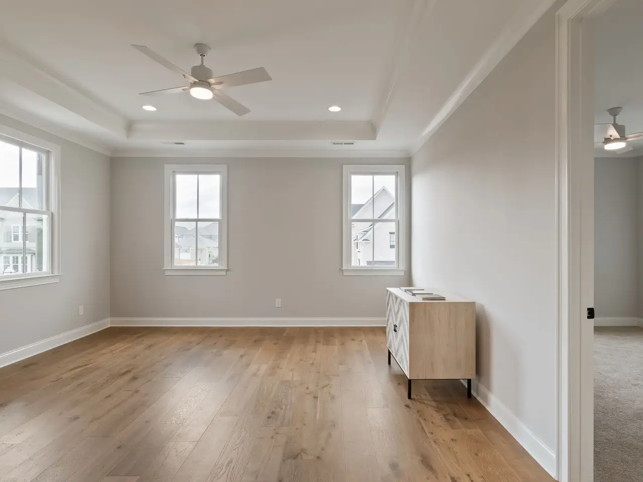 • Natural wood beam ceiling in primary suite