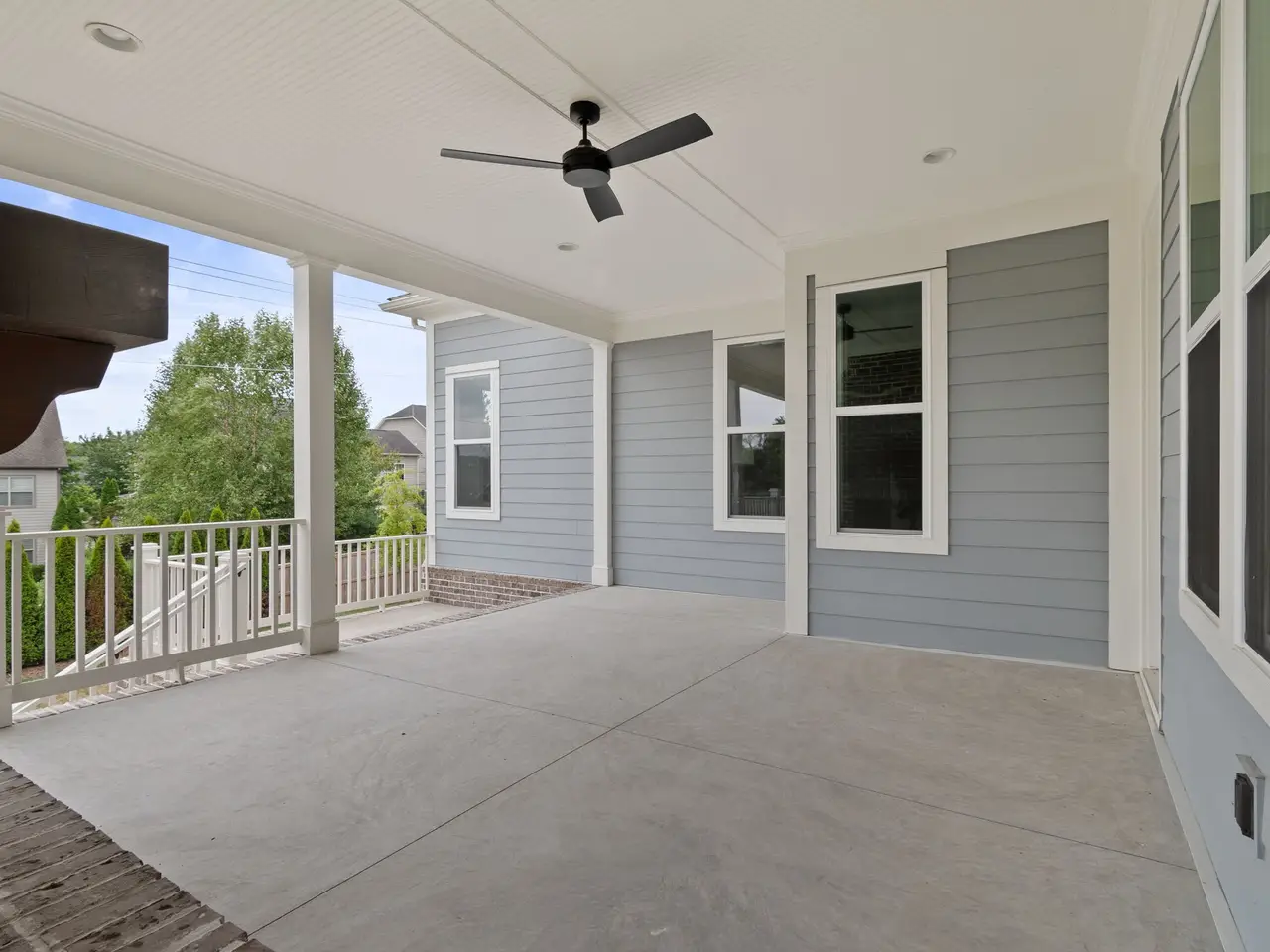 • Cozy covered back porch with fireplace