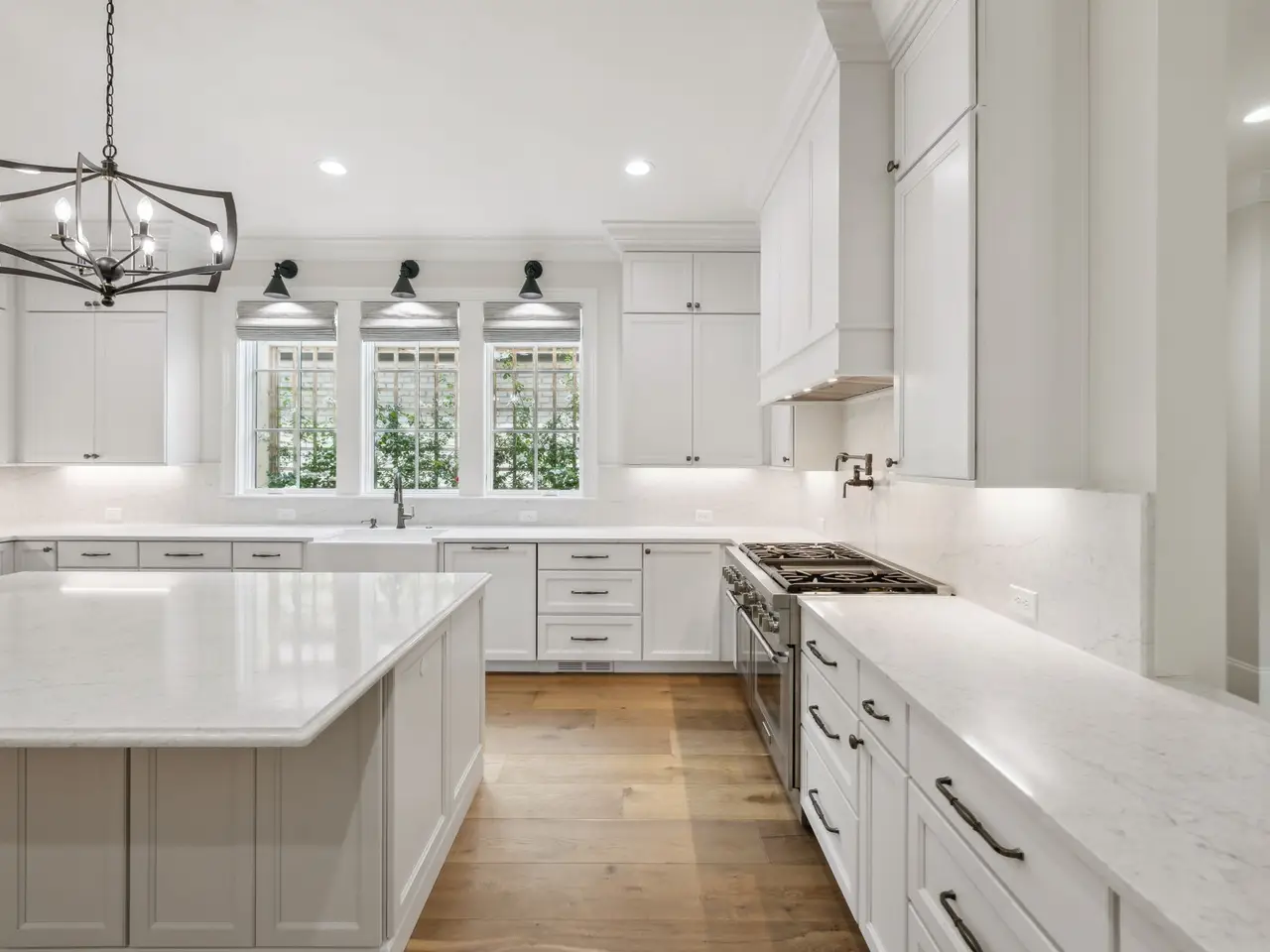 • Gourmet kitchen with grand island, custom cabinetry, and professional-grade appliances