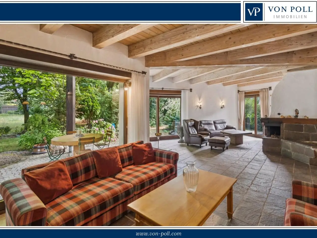 This high-quality detached house impresses with its spacious layout, classic country house architecture and versatile usage options - ideal for discerning buyers looking for an elegant yet future-proof home. The entrance area opens onto a clearly structured floor plan with flowing transitions between the living areas. Generous window areas create bright, light-flooded rooms and create a harmonious connection to the spacious outdoor area. A fireplace in the living area sets an architectural accent and provides additional comfort on cooler days. On the upper floor, there are three rooms that can be used flexibly - ideal as bedrooms, children's rooms or workspaces. One of the rooms is equipped with an integrated dressing area. A well-kept daylight bathroom and three balconies with different orientations underline the high-quality living situation. A special feature of the house is the separate granny apartment with its own entrance. It is ideal for guests, adult family members, au pairs, care workers or for commercial use - and offers a high degree of privacy and flexibility. The spacious plot opens up a wide range of design options - whether as a high-quality landscaped garden, a family-friendly play area or a quiet retreat. Due to its size, there is also potential for dividing the plot or building on it, which makes the property particularly interesting for investors or families with expansion plans. In terms of design, this property offers numerous prospects: whether stylish modernization or further development in keeping with the existing country house style - it offers a solid architectural basis for individual concepts. A spacious double garage rounds off the offer and provides comfortable space for vehicles, bicycles and other possible uses.