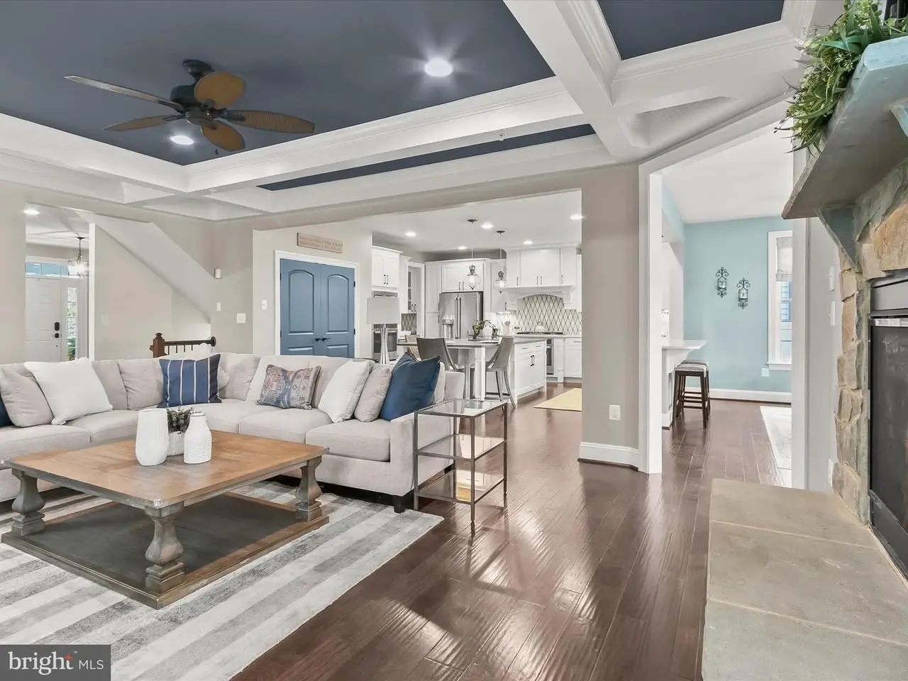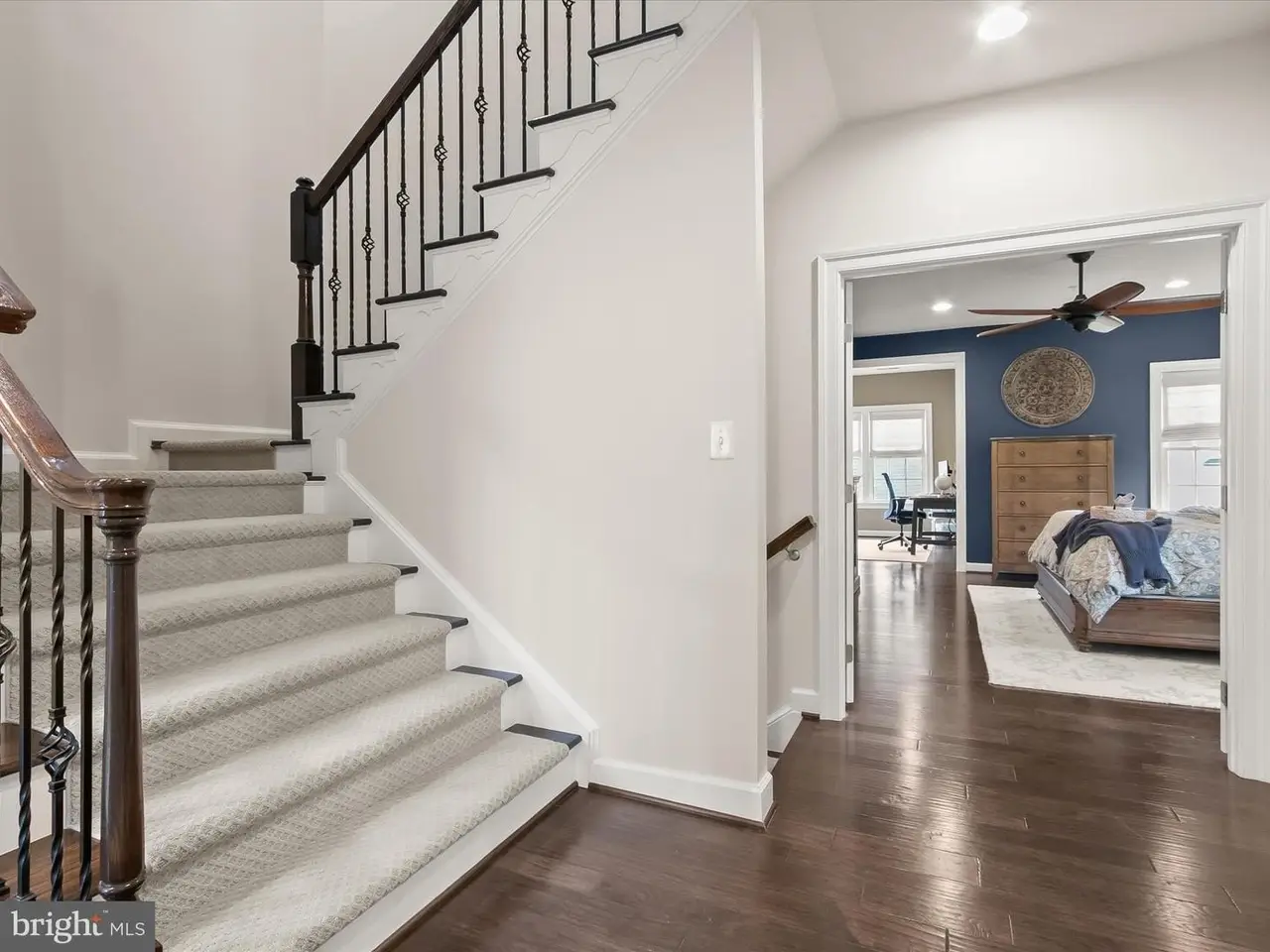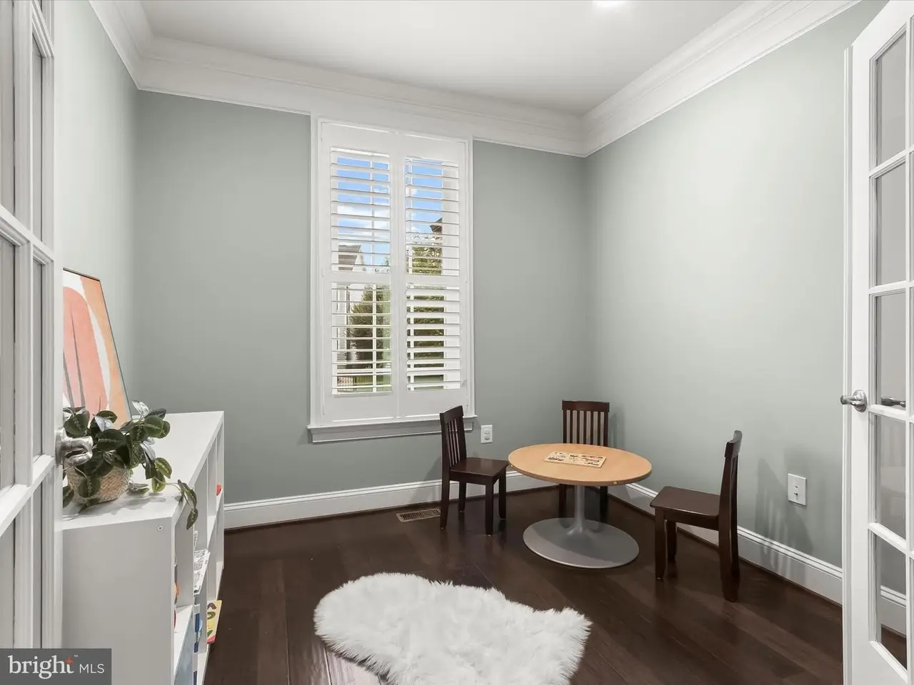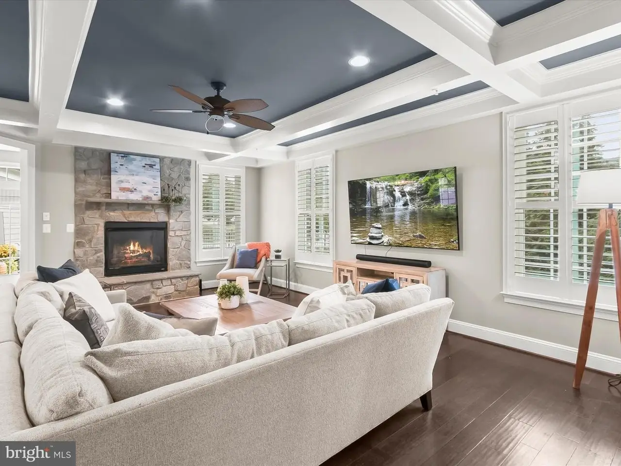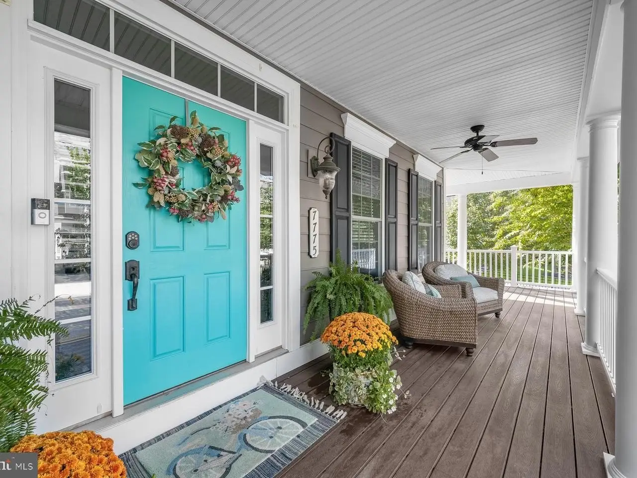While every home in Maple Lawn is coveted, this premiere offering in the highly sought-after Midtown-West District is a standout. 7775 Elmwood Road is an absolutely showstopping NV Beaconsfield model presenting 5 bedrooms, 4.5 bathrooms, and more than 5,614 total square feet. Sited on a huge corner lot, the backyard oasis offers a fully fenced yard and custom patio with Trex decking, pavers, and fire pit. Every structural upgrade offered by NV Homes is included: bonus morning room, massive wrap-around front porch, primary bedroom sitting room & balcony, and a fourth level bedroom suite add-on. A magazine-worthy kitchen with expanded leathered quartz island is sure to impress. The kitchen also offers a butler pantry, glass front cabinetry, stylish backsplash, designer wallpaper, two ovens, five-burner cooktop and a wine fridge. Other main level highlights include hardwood flooring, extensive millwork, crown moulding, a bay window allowing tons of natural light, and an inviting family room with coffered ceiling and stone-front gas fireplace. The morning room off the kitchen showcases a wall of windows all its own and features French doors leading to the patio. An office with even more French doors, a half-bathroom and coat closet complete the main level. The upper level of this home features hardwood flooring throughout and includes a luxe primary bedroom with two walk-in closets, organizers, a sitting room with built-in cabinetry, and a gas fireplace. The stunning and completely renovated primary bathroom boasts a custom shower with multiple shower heads, standalone soaking tub, designer dual sink vanity, and premium finishes. There are three additional bedrooms and a shared bathroom with a dual sink vanity upstairs. This level is completed with a laundry room and hallway linen closet. The fourth level is perfect for in-laws, guests, or an au pair offering its own living area and 5th bedroom with en suite bath. The lower level presents a sprawling entertainment and relaxation area and a full bathroom. A large wet bar with espresso-colored shaker-style cabinets, fridge, dishwasher, and sink provide everything needed for hosting. Adjacent to the wet bar is a well-equipped gym while a finished storage room provides elegant yet practical additional space. Conveniently located close to all major Baltimore/DC commuter routes, and with enviable amenities including a resort-style community pool, tennis courts, pickleball courts, basketball courts, walking trails, state-of-the-art gym and more - you'll quickly see why Maple Lawn is an award-winning planned community unlike any other in the region.