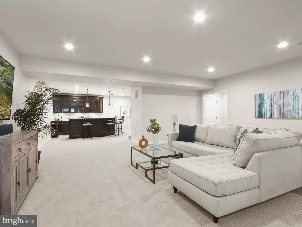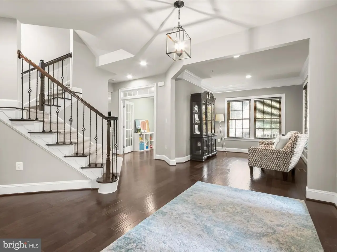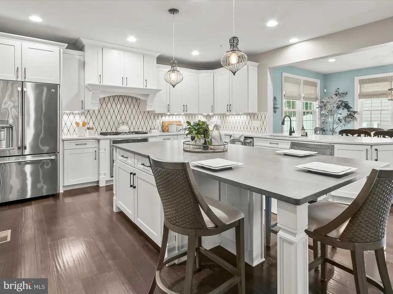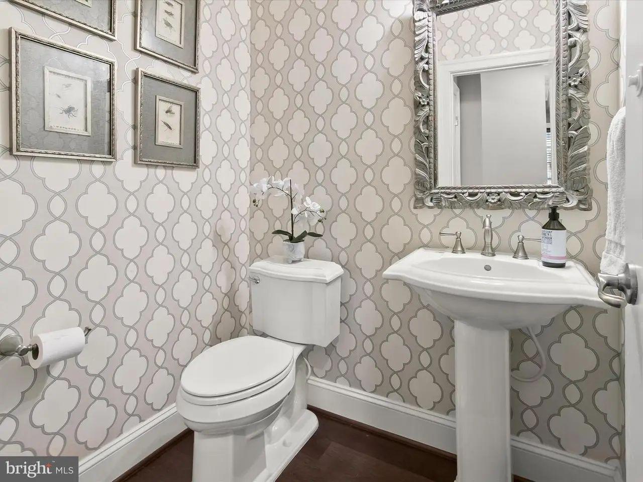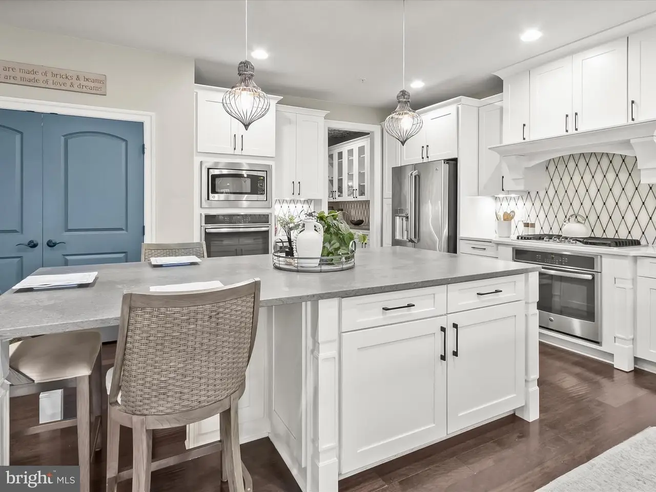 While every home in Maple Lawn is coveted, this premiere offering in the highly sought-after Midtown-West District is a standout. 7775 Elmwood Road is an absolutely showstopping NV Beaconsfield model presenting 5 bedrooms, 4.5 bathrooms, and more than 5,614 total square feet. Sited on a huge corner lot, the backyard oasis offers a fully fenced yard and custom patio with Trex decking, pavers, and fire pit. Every structural upgrade offered by NV Homes is included: bonus morning room, massive wrap-around front porch, primary bedroom sitting room & balcony, and a fourth level bedroom suite add-on. A magazine-worthy kitchen with expanded leathered quartz island is sure to impress. The kitchen also offers a butler pantry, glass front cabinetry, stylish backsplash, designer wallpaper, two ovens, five-burner cooktop and a wine fridge. Other main level highlights include hardwood flooring, extensive millwork, crown moulding, a bay window allowing tons of natural light, and an inviting family room with coffered ceiling and stone-front gas fireplace. The morning room off the kitchen showcases a wall of windows all its own and features French doors leading to the patio. An office with even more French doors, a half-bathroom and coat closet complete the main level. The upper level of this home features hardwood flooring throughout and includes a luxe primary bedroom with two walk-in closets, organizers, a sitting room with built-in cabinetry, and a gas fireplace. The stunning and completely renovated primary bathroom boasts a custom shower with multiple shower heads, standalone soaking tub, designer dual sink vanity, and premium finishes. There are three additional bedrooms and a shared bathroom with a dual sink vanity upstairs. This level is completed with a laundry room and hallway linen closet. The fourth level is perfect for in-laws, guests, or an au pair offering its own living area and 5th bedroom with en suite bath. The lower level presents a sprawling entertainment and relaxation area and a full bathroom. A large wet bar with espresso-colored shaker-style cabinets, fridge, dishwasher, and sink provide everything needed for hosting. Adjacent to the wet bar is a well-equipped gym while a finished storage room provides elegant yet practical additional space. Conveniently located close to all major Baltimore/DC commuter routes, and with enviable amenities including a resort-style community pool, tennis courts, pickleball courts, basketball courts, walking trails, state-of-the-art gym and more - you'll quickly see why Maple Lawn is an award-winning planned community unlike any other in the region.