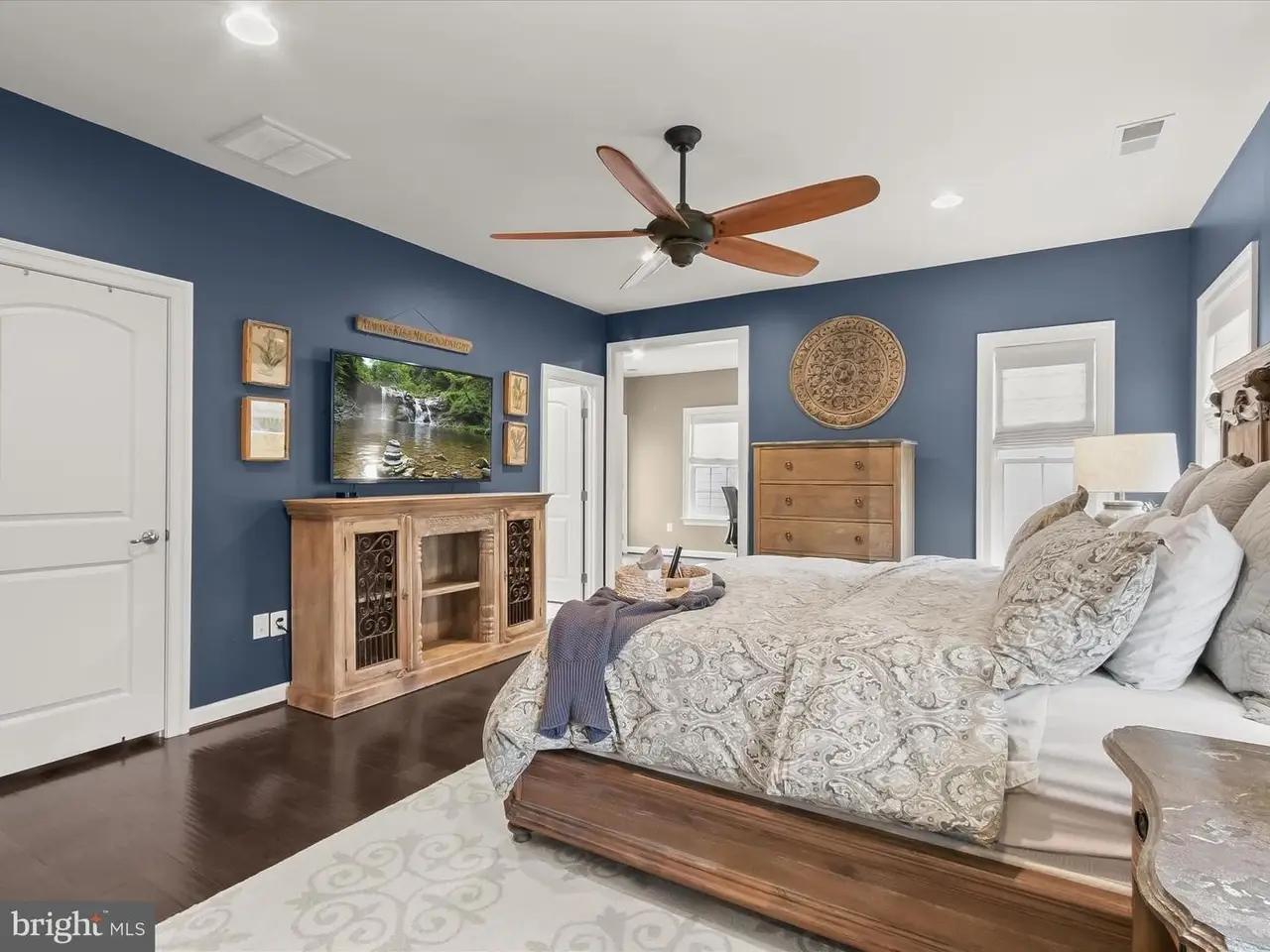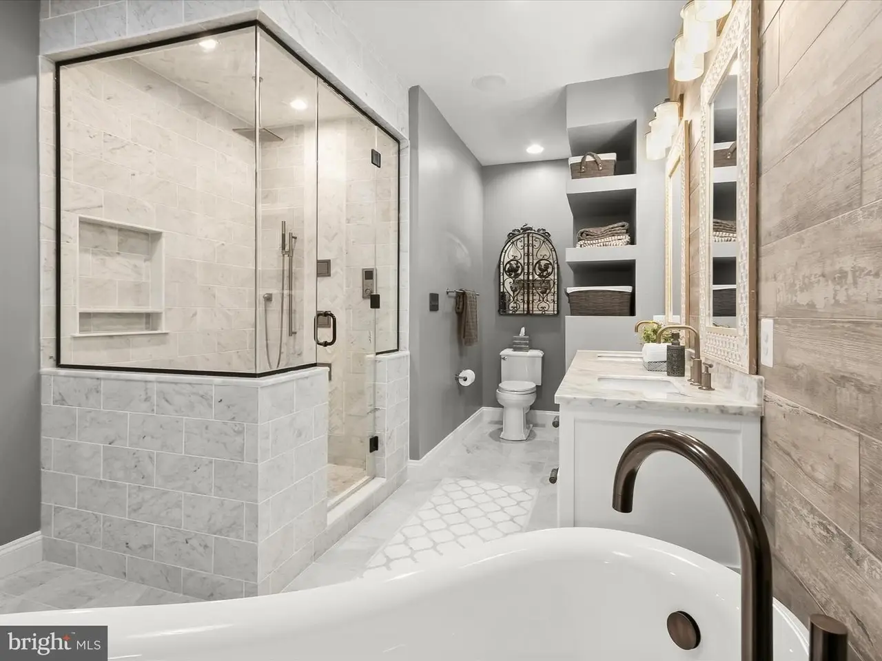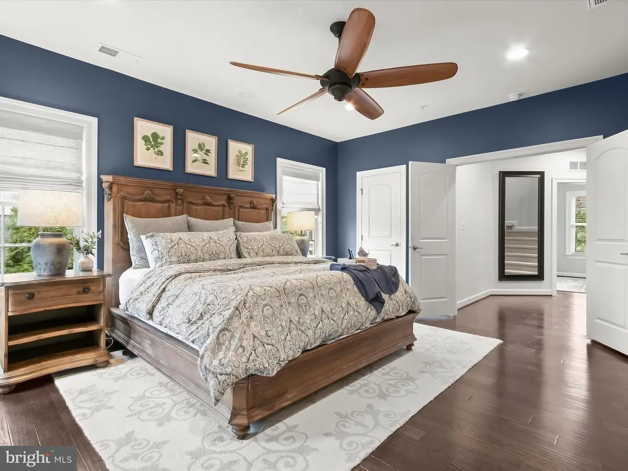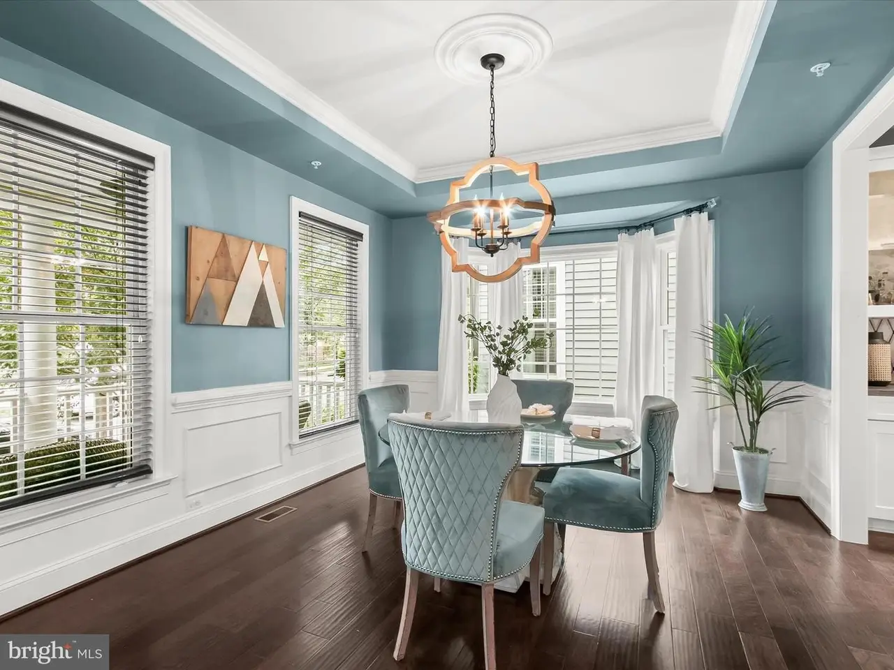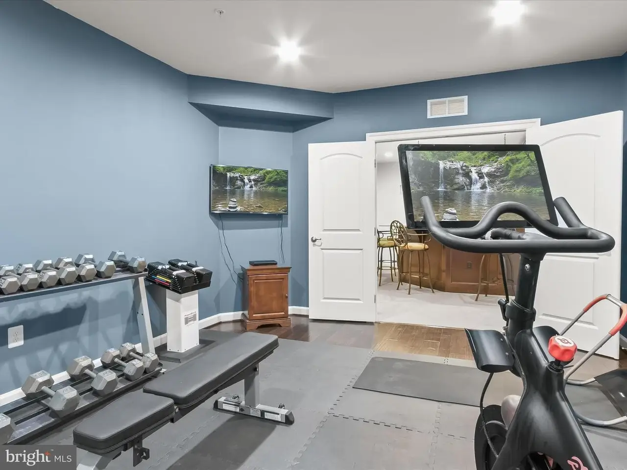 While every home in Maple Lawn is coveted, this premiere offering in the highly sought-after Midtown-West District is a standout. 7775 Elmwood Road is an absolutely showstopping NV Beaconsfield model presenting 5 bedrooms, 4.5 bathrooms, and more than 5,614 total square feet. Sited on a huge corner lot, the backyard oasis offers a fully fenced yard and custom patio with Trex decking, pavers, and fire pit. Every structural upgrade offered by NV Homes is included: bonus morning room, massive wrap-around front porch, primary bedroom sitting room & balcony, and a fourth level bedroom suite add-on. A magazine-worthy kitchen with expanded leathered quartz island is sure to impress. The kitchen also offers a butler pantry, glass front cabinetry, stylish backsplash, designer wallpaper, two ovens, five-burner cooktop and a wine fridge. Other main level highlights include hardwood flooring, extensive millwork, crown moulding, a bay window allowing tons of natural light, and an inviting family room with coffered ceiling and stone-front gas fireplace. The morning room off the kitchen showcases a wall of windows all its own and features French doors leading to the patio. An office with even more French doors, a half-bathroom and coat closet complete the main level. The upper level of this home features hardwood flooring throughout and includes a luxe primary bedroom with two walk-in closets, organizers, a sitting room with built-in cabinetry, and a gas fireplace. The stunning and completely renovated primary bathroom boasts a custom shower with multiple shower heads, standalone soaking tub, designer dual sink vanity, and premium finishes. There are three additional bedrooms and a shared bathroom with a dual sink vanity upstairs. This level is completed with a laundry room and hallway linen closet. The fourth level is perfect for in-laws, guests, or an au pair offering its own living area and 5th bedroom with en suite bath. The lower level presents a sprawling entertainment and relaxation area and a full bathroom. A large wet bar with espresso-colored shaker-style cabinets, fridge, dishwasher, and sink provide everything needed for hosting. Adjacent to the wet bar is a well-equipped gym while a finished storage room provides elegant yet practical additional space. Conveniently located close to all major Baltimore/DC commuter routes, and with enviable amenities including a resort-style community pool, tennis courts, pickleball courts, basketball courts, walking trails, state-of-the-art gym and more - you'll quickly see why Maple Lawn is an award-winning planned community unlike any other in the region.