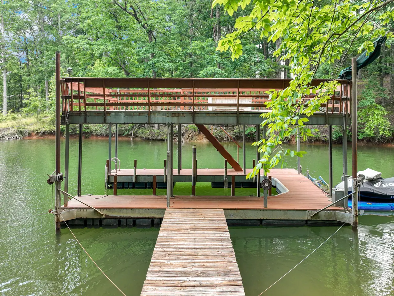 This elegant lakefront home is nestled in the upscale Lake Lanier community of Sidney on Lanier, offering the ultimate lake living experience. Ideally located just five minutes from downtown Gainesville's shopping and restaurants, and only 15 minutes from Northeast Georgia Medical Center, this home blends convenience with luxurious lakeside living. Enjoy your own private dock with boat slip and party deck! It's a gentle easy walk to the dock plus easily accessible by golf cart. Designed for comfortable lake living, the main level features a spacious primary suite, a vaulted great room with a wood-burning fireplace, a vaulted breakfast room with picture windows, and a large kitchen with an island. Upstairs, you'll find three additional bedrooms, a true Jack-and-Jill bath, and an office. The finished terrace level is ideal for entertaining, complete with a family room with a fireplace and bar, a screened porch, a spacious en-suite bedroom, and a third car drive around garage with workshop. Enjoy stunning seasonal views from the large deck and screened porch, surrounded by privacy. The driveway has a slope but offers ample level parking for guests, along with two garages that accommodate three cars. The walk to the dock is extremely gentle making lake days a breeze. Notable updates include a new roof (2017), fresh exterior and main level interior paint, transferable termite and moisture-free stucco warranties, updated dock permit, and recently inspected and serviced HVAC and septic systems (pumped and inspected 2025). A new hot water heater was also added. Don't miss this opportunity to live in one of Lake Lanier's premier communities!