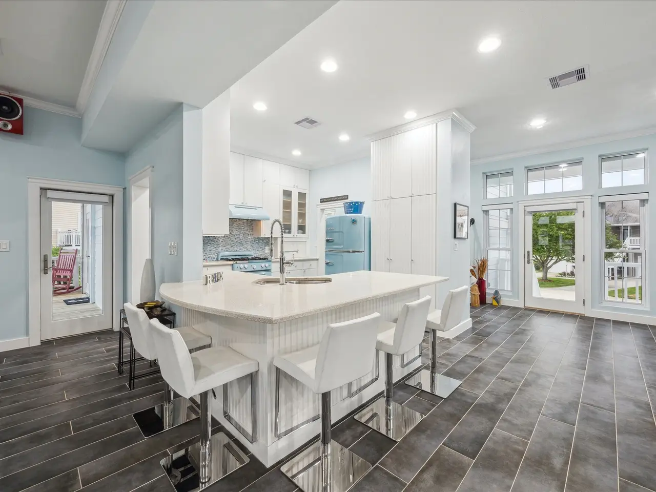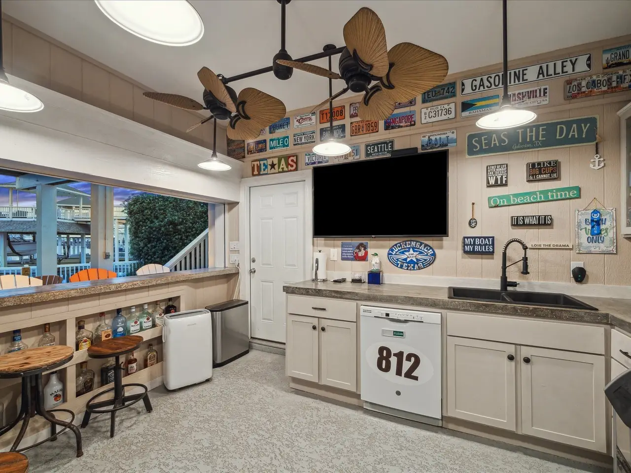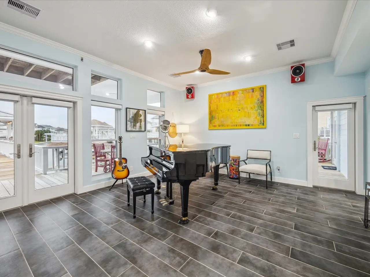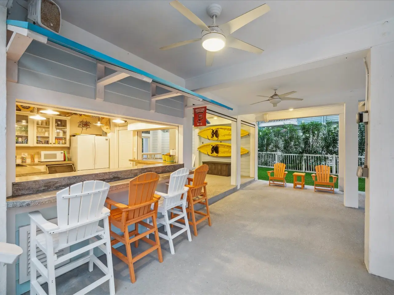 Experience vibrant coastal living in this beautifully updated & refreshing Laffite’s Cove home. Set on an expansive 11,010 sq ft lot (CAD), featuring a metal roof, fresh exterior paint, & durable Hardie plank siding. Whisk groceries & luggage upstairs w/your outdoor lift. Inside, enjoy black wood-look tile flooring, Big Chill appliances, & "Big Ass Fans." Expansive living room, dining, kitchen area overlooks the water. High ceilings, crown moldings, designer touches, electric shades. Large primary suite w/balcony to take in the cool breezes overlooking the water. Additional 3 bedrooms provide plenty of space. The outdoor oasis boasts refreshing pool w/chiller, spa, outdoor kitchen, bar, & screened party room w/half bath. Situated on a wide stunning oxbow canal location & proximity to the Laffite’s Cove Nature Preserve, this home offers the perfect blend of fun, design, & relaxation. Social Galveston Country Club membership transfers with property. Have a mini vacation every weekend!