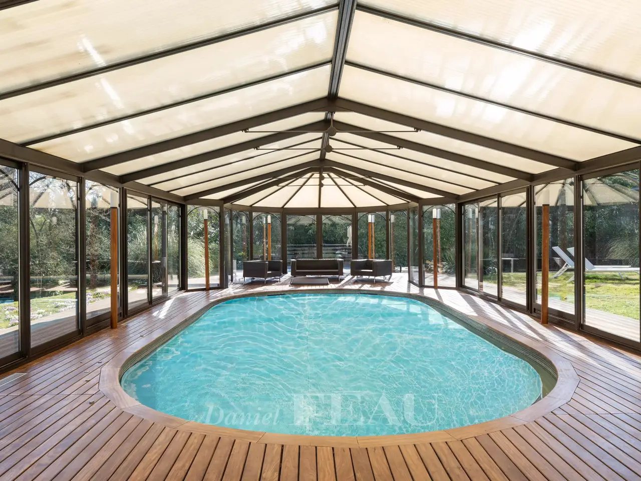 This elegant property dating from the 1930s is set in a 2133 sqm plot with a heated and covered swimming pool. Offering 308 sqm of floor space and 292 sqm of living space, it includes a living/reception room, dining room and open-plan kitchen opening onto a terrace, a master suite with a bath/shower room, four bedrooms and a bathroom. The garden level features a superb conservatory. On a basement with a recreation room and a TV lounge. 2-car garage. In a convenient location near the shops, the schools and the transport networks.