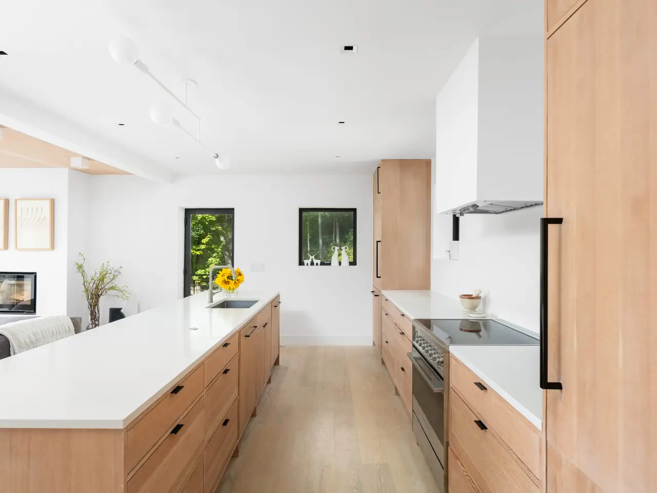 • Custom Douglas fir cabinetry