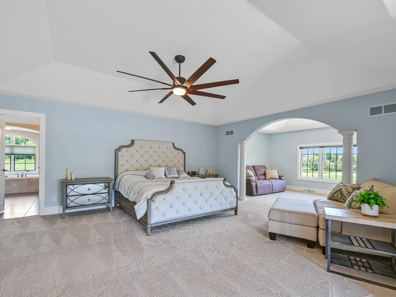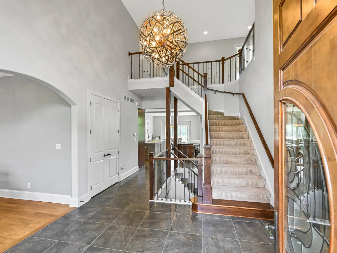 Experience luxury living in this exquisite contemporary home, thoughtfully designed with exceptional details. The main level showcases a chef's dream kitchen with two spacious islands, a large dinette, and a butler's pantry-ideal for everyday living and entertaining alike. Enjoy the natural light flooding into the sunroom and great room, both with expansive windows that invite the outdoors in. The main floor also features a formal dining room and a fantastic home office perfect for today's lifestyle. Upstairs, retreat to the luxurious primary suite featuring a private sitting area with a cozy fireplace, private deck overlooking the serene backyard, and a spa-like en suite with a whirlpool tub, multi-jet shower, double vanities, and two walk-in closets. The second bedroom includes a private bath, while bedrooms three and four share a well-appointed bathroom. All have walk-in closets. The exposed lower level is an entertainer's paradise, complete with a custom bar, theater room, exercise room, and a full bath. A 4-car garage and 3.46 beautifully landscaped acres complete this one-of-a-kind property-a rare combination of modern style, thoughtful amenities, and serene outdoor space.