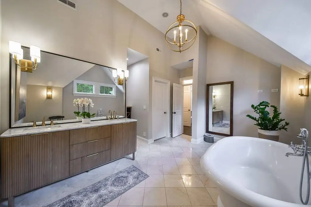 • Jetted soaking tub and custom shower