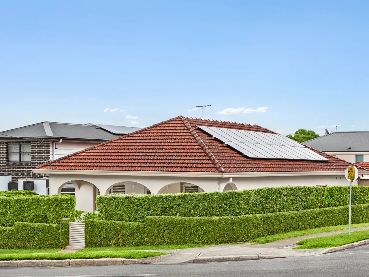 A commanding presence on a generous 627sqm corner block, this elegant brick single storey home exudes timeless appeal and enduring quality, something only truly appreciated once inside its solid walls. Beautifully proportioned, it offers large accommodation and living spaces, high ceilings and abundant natural light throughout, blending classic charm with contemporary functionality. With its prized dual street frontage and sought-after position, the property also presents exceptional potential for the future to redevelop into a duplex, or build a brand-new luxury home (STCA). Perfectly placed for lifestyle and convenience, it's within walking distance from the Gladesville Village, cafes, restaurants, quality schools and transport links. - Spacious modern kitchen with ample bench space and storage - Four well-proportioned bedrooms, dedicated office space - Two full spacious bathrooms, separate studio behind the garage - Brick construction underpinning quality and longevity - Dual street frontage, wide access and extra parking potential - North-facing rear garden, ideal for relaxed outdoor living - Corner block offering privacy, presence and future development - Walk to cafés, shops, buses and ferry at your doorstep