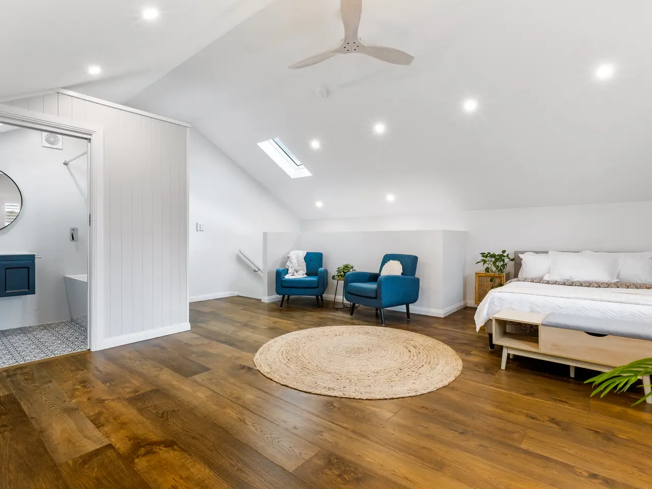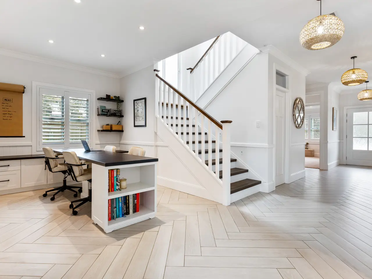 Charmingly nestled opposite heritage listed, freshwater Glenbrook Lagoon, this stunning north facing residence exudes commanding street presence. Its inviting blue hue and classic white picket fence creates a warm yet an impressive welcome. From the generous front door, you enter a magnificent world of oversized spaces, where high ceilings and unique custom details enhance every single room. Thoughtfully designed for both beauty and functionality, the striking kitchen is central to the home and presents a large island bench boasting ample storage and seating space, luxurious stone bench tops, and Belling duel-fuel stove and oven. The Bosch dishwasher and farmhouse ceramic sink add both style and practicality, while the adjoining butler's pantry offers copious storage for all culinary needs. The dining area, with custom built-in bench seating flows seamlessly to the alfresco space through bifold glass doors, ensuring entertaining is a breeze. This outdoor haven, paved in limestone, includes a pizza oven, and built-in Weber Q, surrounded by sandstone blocks, lush grass, and a limestone path leading to a breathtaking heated inground saltwater pool complete with waterfall and cabana. The generous staircase, crowned by a stunning chandelier, guides you to the upstairs living space. Boasting wide engineered floorboards and a gabled ceiling this area is complemented by an inviting tiled balcony with views over the sparkling lagoon. Each large bedroom offers its own ensuite and generous walk-in robe. The private main suite boasts its own gabled ceiling and balcony overlooking the pool and grounds below, a walk through his and hers wardrobe, and ensuite fitted with bath, shower, and double vanity. The separate studio echoes the same design elements and remarkable amenities as the main house, with a loft bedroom and bathroom and boundless potential. Every detail of this home has been thoughtfully considered, and no expense spared. The double garage offers drive through access; the front porch features a quintessential porch swing inviting leisurely afternoons enjoying the peaceful surroundings and the pop-up sprinkler system takes care of the lush buffalo lawns both front and back. If you envisage your own private sanctuary, 14 Skarratt Avenue brings that to life. - Architecturally designed coastal Hamptons style encompassing the whisper quiet 1,021sqm approx. parcel of land - Media room with theatre doors, separate downstairs family room with gas fireplace, with stone surround, and pool views - 5th bedroom on ground level with plush carpet, built in wardrobe, ceiling fan and direct access to bathroom - Mudroom with custom cabinetry, open plan office with pop-up electrical points and collaborative desk layout - Water tanks, solar panels, plantation shutters throughout and oversized double-glazed, double hung windows - Convenient access to Great Western Highway, approx. 550m to St Finbar's Primary School, 1.5km to Glenbrook Public school, and a short 15min stroll to coveted Glenbrook village