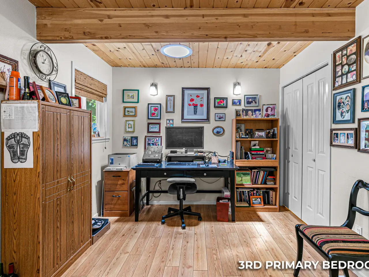 Located in the Gold Rey Estates Subdivision (only 10 mins from town), this 3200+ sq ft single level estate borders a private lake (350+ ft of lake frontage) that features 5 bedrms, 4.5 bathrms, 1.51 level acre lot w/ water rights, open floor plan, chef's kitchen (granite countertops, large island, custom Hawaiian Koa cabinetry w/ built-in pull-outs, tile flooring, large pantry w/ rotating shelving), vaulted ceilings, attached guest quarters (separate entrance way, full bathrm, bedrm, vaulted ceilings), detached 3 car garage, circular asphalted driveway, large deck, attached carport, & full RV hook ups! Owner spared no expense towards remodeling the entire primary bathroom w/ a spacious tiled walk-in shower, 3 sinks, & walk-in closet, installing metal roofs on the house, detached garage, & workshop, & enhancing the landscape. Seller is offering a one-year home warranty with an acceptable offer!