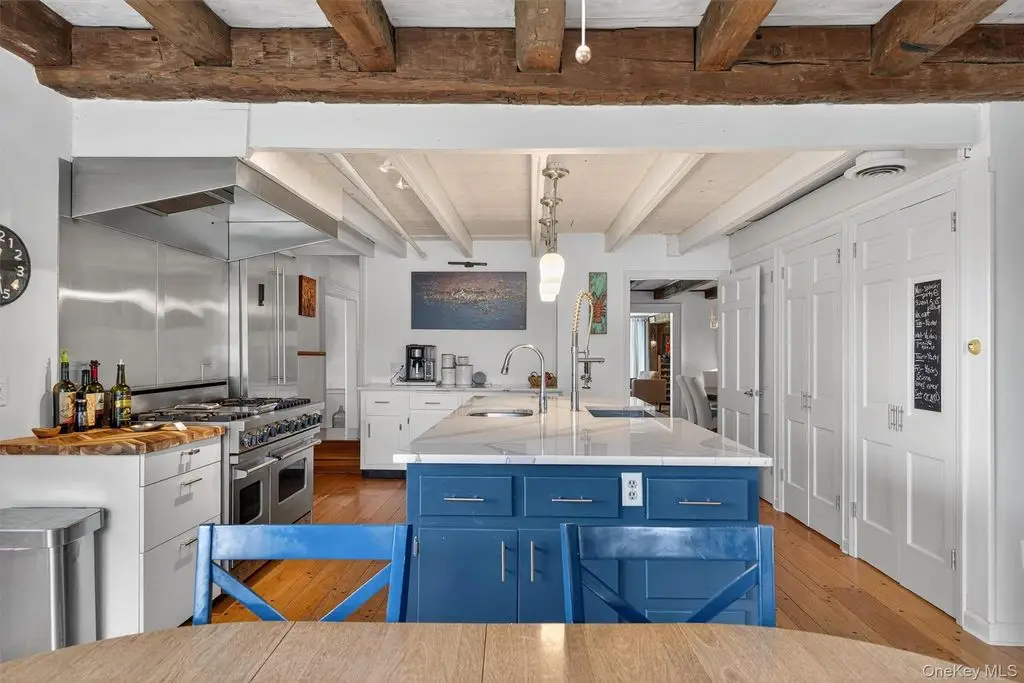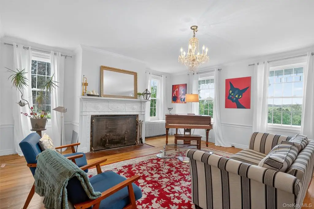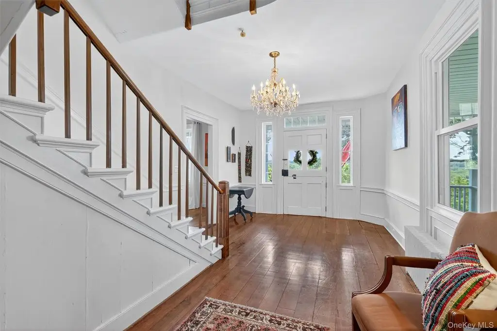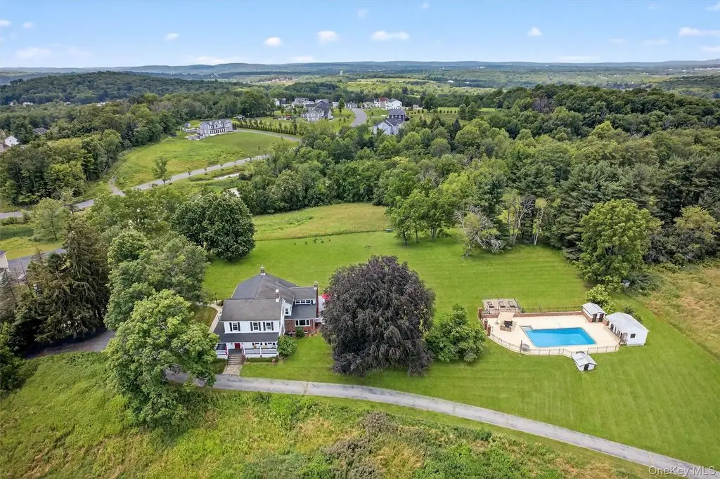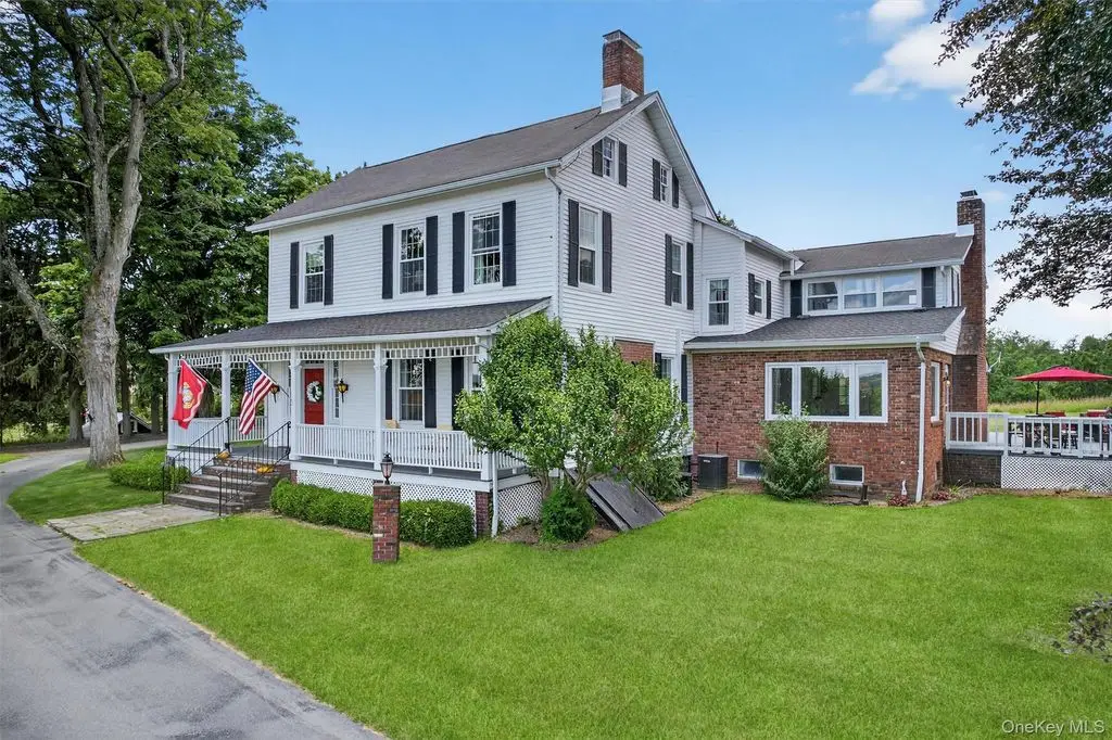 A masterpiece of historic grandeur and modern refinement, this distinguished 5-bedroom, 4-bathroom mini estate, originally constructed in 1760, stands as an exquisite testament to architectural excellence. Nestled on a sprawling 8.7 acre expanse, this estate embodies an era of craftsmanship rarely found today, with original wide-plank hardwood floors, exposed beams, and four stately fireplaces that speak to the home's rich colonial heritage. A sweeping grand driveway sets an impressive tone, leading to a distinguished wraparound porch entrance where a charming Dutch door opens to a residence imbued with warmth, sophistication, and timeless allure. Inside, every detail has been meticulously curated to harmonize historic character with modern luxury. The gourmet kitchen, a true showpiece, boasts top-of-the-line stainless steel appliances, gleaming quartz countertops, and a central island designed for both culinary excellence and casual gatherings. Just beyond, an elegant gathering parlor with wet bar provides an inviting space to connect, converse, and entertain while guests soak in breathtaking views of the surrounding landscape. The sunroom, drenched in natural light, offers a peaceful escape, seamlessly blending indoor and outdoor living. Architectural elements such as a grand main hall staircase, a walk-up attic, a discreet private back staircase, intricate millwork, and refined pocket doors elevate the home's sense of sophistication and historical depth. Beyond its doors, the estate unfolds into a sanctuary of outdoor splendor. Manicured grounds stretch gracefully toward a magnificent 20 x 40 Gunite in-ground pool, a striking focal point for both relaxation and recreation. The adjacent pool house, fully outfitted with a bath, shower, and wet bar, ensures effortless entertaining and leisurely afternoons spent poolside. Thoughtfully enhanced for contemporary living, the home features all-new windows, a foam-insulated attic, furnace, hot water heater, elegantly upgraded bathrooms, and a completely restored front porch each update executed with the utmost respect for its historic integrity. The newly roofed seven-car garage offers endless possibilities, catering to car enthusiasts, artisans, or those seeking a home office or workspace. This mini-estate offers a seamless blend of past and present thoughtfully curated for today's most discerning homeowner. Also, legend has it that Babe Ruth, Mickey Mantle and Cary Grant spent time in this home!