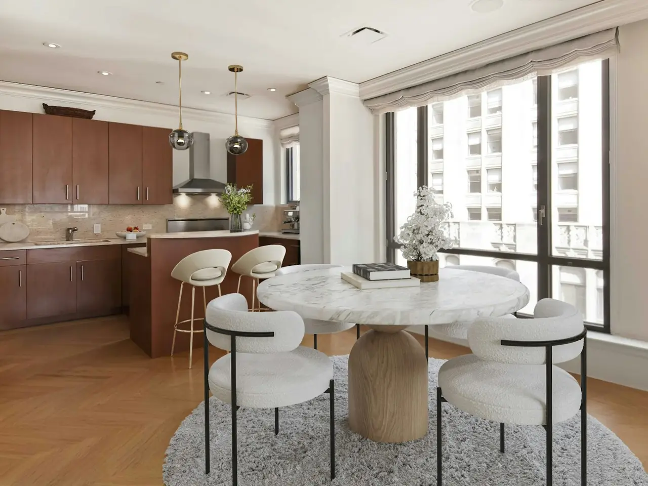 Rare full floor facing Madison Square Park. Enjoy 29" of unobstructed direct southern views of Madison Square Park from this full-floor, corner 3-bedroom, 3.5-bath boutique condo loft home on the fourth floor above the trees. Enter through a keyed elevator into a 2,630 square foot sanctuary with 10-foot ceilings, floor-to-ceiling windows, and an expansive light-filled great room with views of the MetLife Clocktower and Flatiron Buildings. This full-floor corner residence offers a clean, modern design complemented by stunning herringbone wood floors and floor-to-ceiling windows in every room. The great room faces south into Madison Square Park. The windowed, bright, chef's kitchen features an open concept and a proper dining room. Enjoy using all the high-end, stainless-steel appliances including a Sub-Zero refrigerator, and wine and beverage cooler. As one enters the private living area, there are three spacious bedrooms, each with an en-suite bathroom and floor-to-ceiling windows. The primary bedroom suite offers plenty of space and privacy at the northern end of the unit, plus a custom-built accessible closet. The primary bathroom has a double-sink vanity, a large tub, and an enclosed shower. Lastly, this full-floor unit features Control 4 Home Automation System, your own private laundry room with a washer and dryer, and a 2-zone central A/C. 50 Madison Avenue is a boutique full-service condominium with only 9 residences in the heart of one of the most desired neighborhoods downtown. The condominium has an attended lobby with a full time security guard. Enjoy everything you need right outside your door, including easy access to transportation, shopping, and the best dining in NYC with Eleven Madison Park, Scarpetta, Eataly, and the Clocktower restaurant in the Edition Hotel.