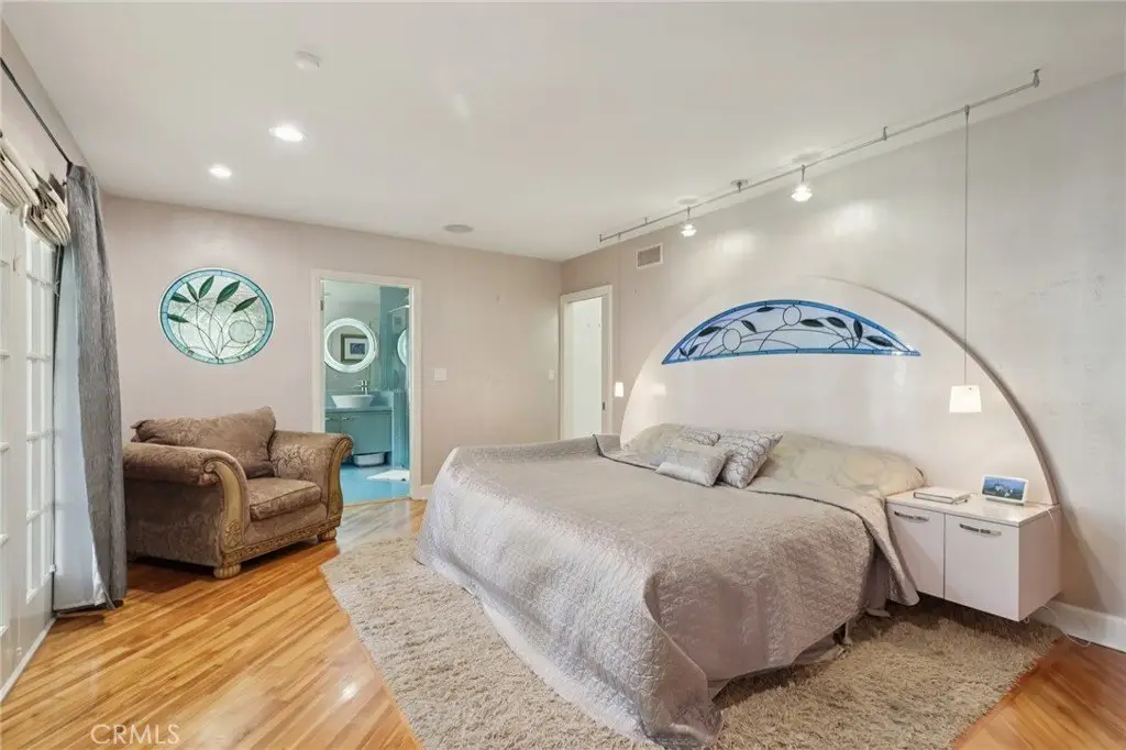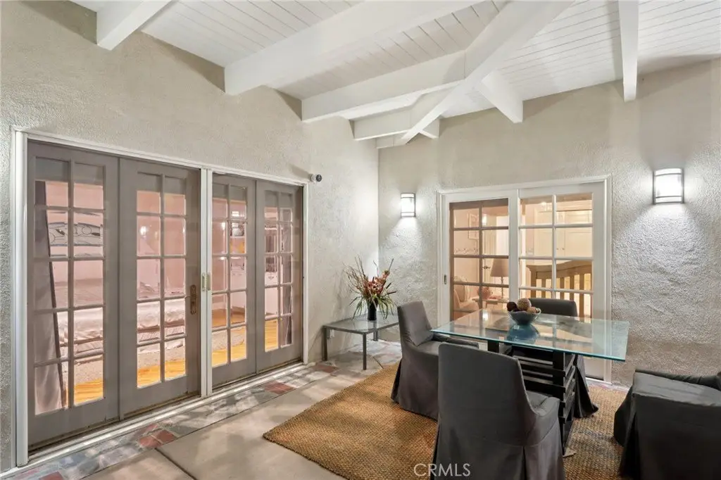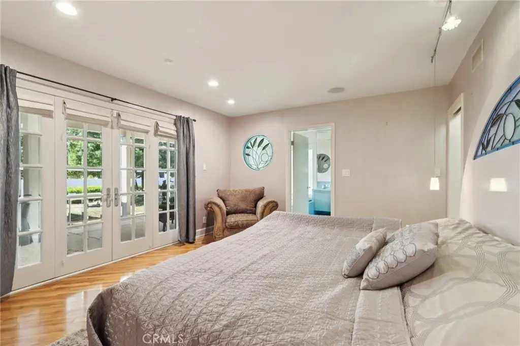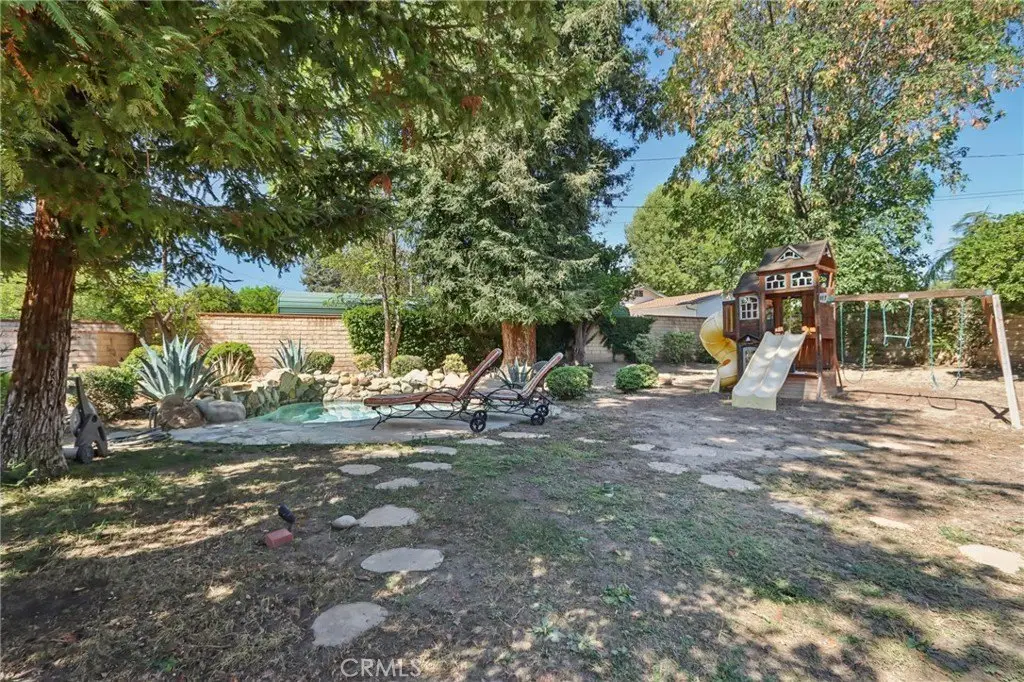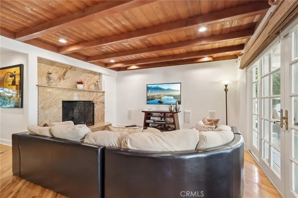 Charming Ranch-Style Retreat in the Heart of Old Granada Hills. Nestled in a picturesque Granada Hills neighborhood, this beautifully maintained single-story ranch home offers timeless character, thoughtful updates, and incredible potential. Situated on an expansive 14,997 sq ft lot, this 4-bedroom, 4-bath home spans 2,271 sq ft of inviting living space—perfect for entertaining, relaxing, or expanding your vision. Step inside to discover a light-filled kitchen adorned with granite countertops, travertine backsplash, stainless steel appliances, a built-in refrigerator, and a charming bay window. The spacious eat-in area flows effortlessly into a formal dining room, ideal for hosting family and friends. The warm and inviting living room is the heart of the home, featuring stunning wood-beamed ceilings, a classic marble fireplace, and elegant French doors that open to your private backyard escape. With four generously sized bedrooms, including two en suites, there’s room for everyone to unwind. The primary suite is a true sanctuary with a walk-in closet, French doors to the backyard, and a luxurious bath complete with a soaking tub and separate shower. A dedicated indoor laundry room adds modern convenience, while original details and tasteful upgrades preserve the home’s unique charm. Outside, the possibilities are endless. Entertain year-round under the expansive 660 sq ft L-shaped covered patio, enjoy cozy evenings around the gas firepit, or soak in the rock spa under the stars. The huge backyard is a blank canvas—whether you envision lush gardens, a pool, or a playground, there’s space for it all. Looking for more flexibility? The detached two-car garage, complete with an additional storage room or den, offers fantastic ADU or guesthouse potential. Located in the highly sought-after Granada Hills Charter High School district and just moments from the beloved Granada Hills Farmers Market, shops, and dining, this home combines comfort, character, and convenience in one incredible package. Don’t miss the opportunity to create your dream lifestyle in this one-of-a-kind Granada Hills gem!