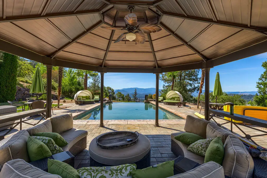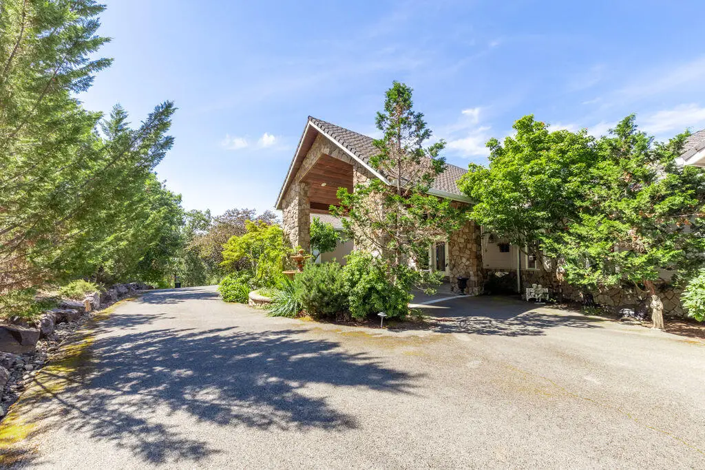Welcome to Granite Hills Estate. Truly exceptional property. 20 Acres back to BLM & County land, Paved driveway w/gated entry, water feature & year-round spring fed pond w/a dock & Bass fishing. Gorgeous landscaping w/ lighted pathways. 4 Bdrm, 4 bath, Office/Library w/built-ins, 6400 SQ Ft, 3 Car Garage w/Portico. Grand entry, lg vaulted ceilings, floor to ceiling windows to take in the stunning views of Mts & City lights. Lg kitchen w/island, main floor primary suite w/spa like bath, door to private deck w/hot tub w/skylight & views. Good size bdrms, lg pantry. Downstairs w/10' ceilings, French Doors to covered patios, lg family rm w/fireplace, lg bar & entertaining area w/mini kitchen, Guest quarters w/kitchenette, bedroom, living rm & door to patio. Infinity Pebble Tec heated pool, lg pavers patio w/Gazebo & fire torches. 5600 SQ FT detached Shop w/RV storage w/dump, water & electricity, office space, 1/2 bath, 4 Car carport. Country living close to town!