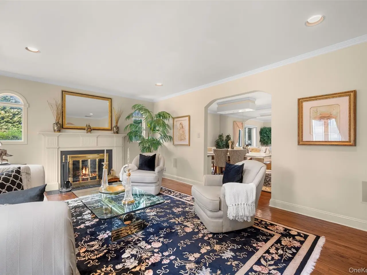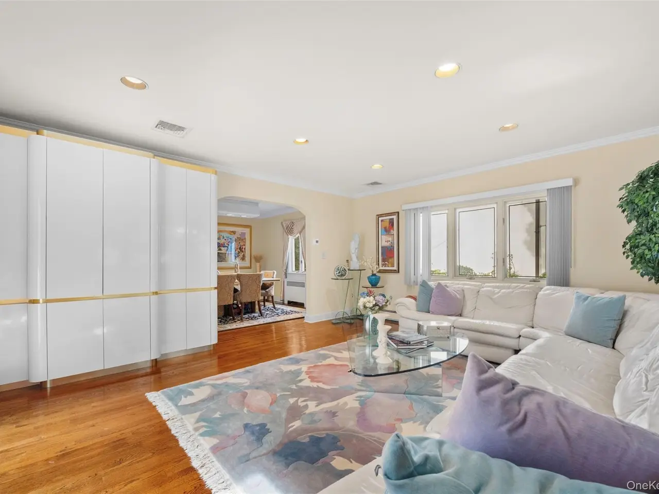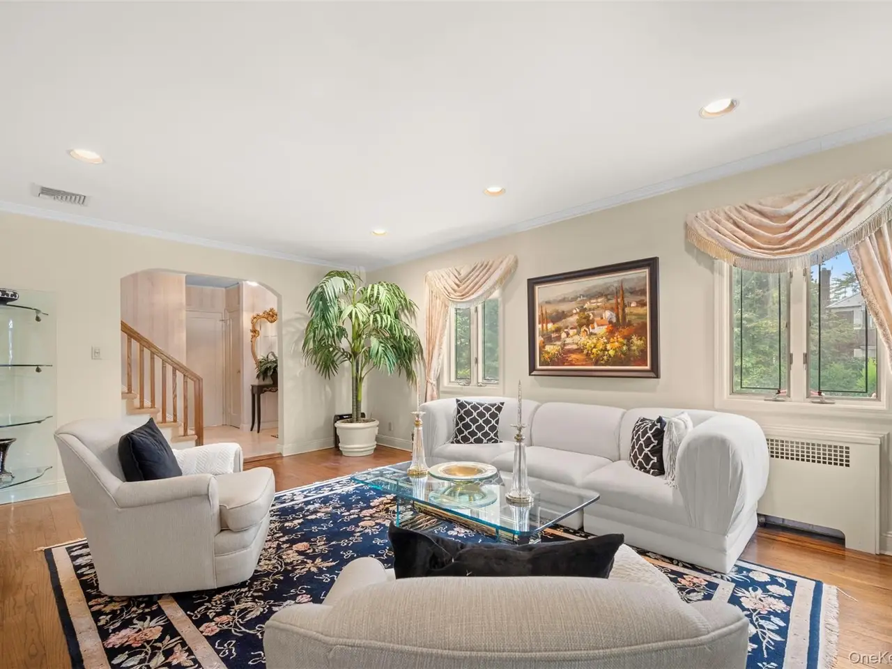 Fabulous Saddle Rock Estates Brick Colonial! Magnificently renovated and meticulously maintained, this 5-bedroom, 3-bath home offers spacious living throughout. Features include a large living room with a wood-burning fireplace, a formal dining room opening to an expanded family room with Trex deck access, and a first-floor bedroom/office with a full bath. The gourmet granite kitchen boasts a breakfast room, double ovens, a warming drawer, and high-end appliances. Upstairs, find 4 generous bedrooms, a sitting area, and 2 full baths. The finished, waterproofed basement includes abundant storage, laundry, and an extra refrigerator. Special features: hardwood floors, alarm system, 2-zone central air, full-house generator, 2 zone gas & 3 zone oil heat, new windows, outdoor storage, and Trex deck and Ring Cameras. Located in the Great Neck Park District near schools and houses of worship. Zoned for Saddle Rock Elementary, North Middle, and North High School.