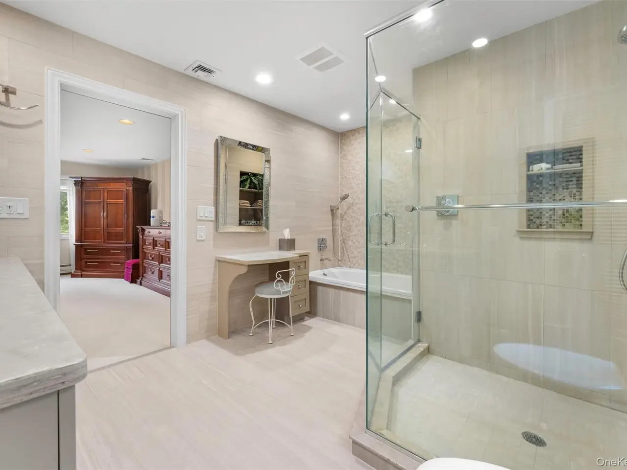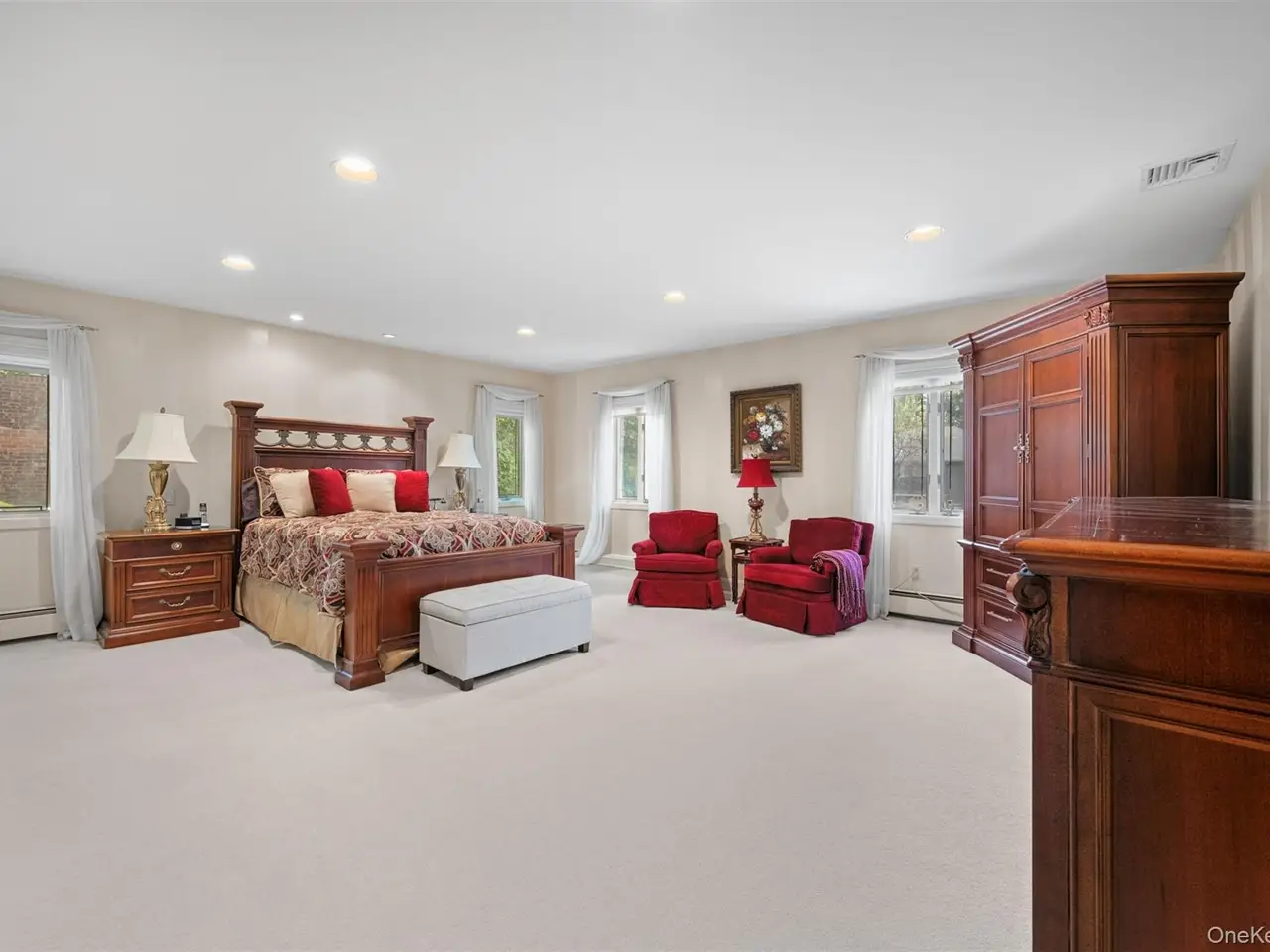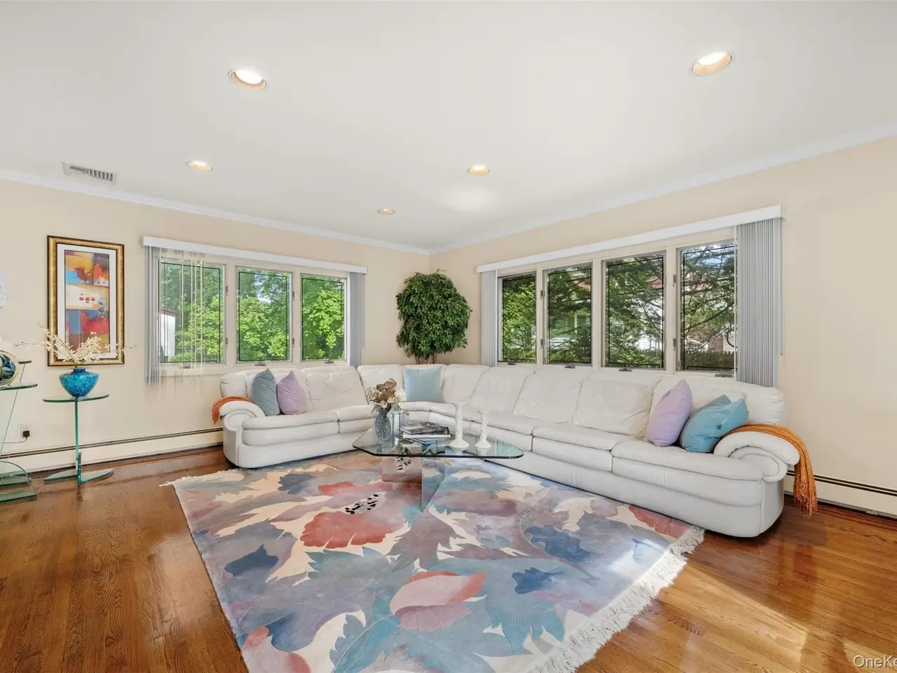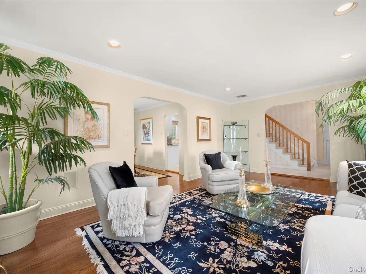 Fabulous Saddle Rock Estates Brick Colonial! Magnificently renovated and meticulously maintained, this 5-bedroom, 3-bath home offers spacious living throughout. Features include a large living room with a wood-burning fireplace, a formal dining room opening to an expanded family room with Trex deck access, and a first-floor bedroom/office with a full bath. The gourmet granite kitchen boasts a breakfast room, double ovens, a warming drawer, and high-end appliances. Upstairs, find 4 generous bedrooms, a sitting area, and 2 full baths. The finished, waterproofed basement includes abundant storage, laundry, and an extra refrigerator. Special features: hardwood floors, alarm system, 2-zone central air, full-house generator, 2 zone gas & 3 zone oil heat, new windows, outdoor storage, and Trex deck and Ring Cameras. Located in the Great Neck Park District near schools and houses of worship. Zoned for Saddle Rock Elementary, North Middle, and North High School.