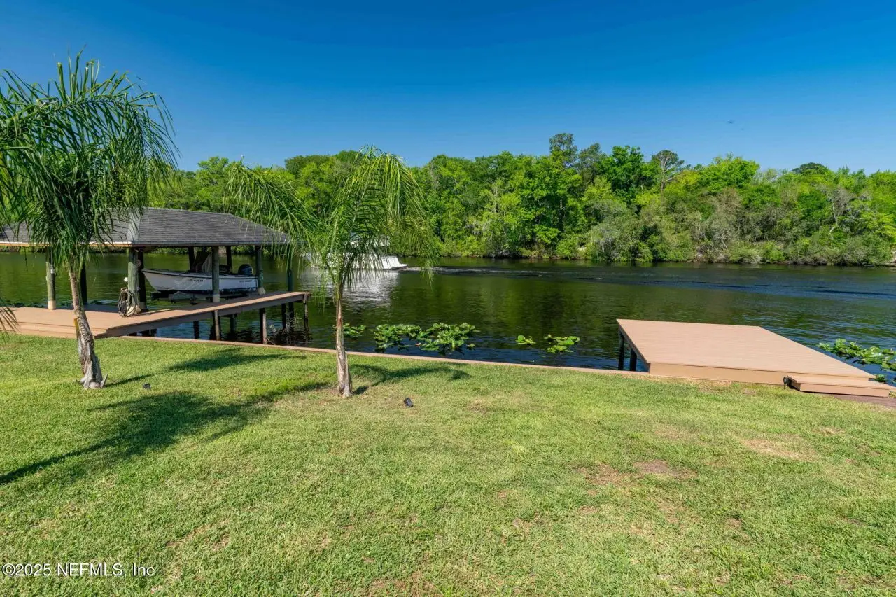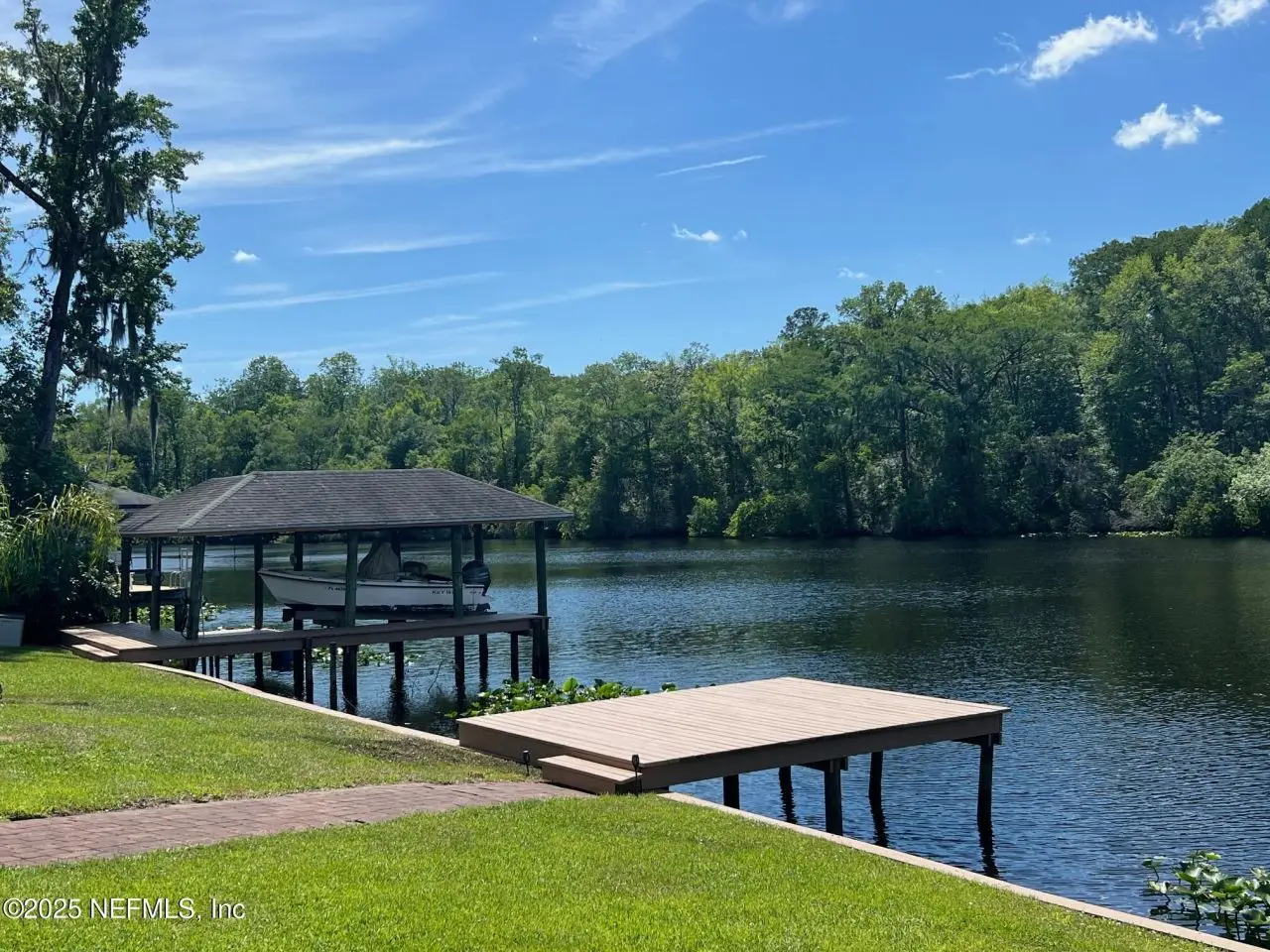 Don't miss this beautiful Black Creek home and get ready to be a part of Creek life! This property has it all with spectacular views of Black Creek in the backyard, and a fishing lake in the front yard! The property features a dock with covered slip and boat lift, wood bulkhead, an additional fishing dock, a boat shed for kayaks and all other aquatic equipment, a generous separate workshop/garage with concrete floor, a concrete block oversized two car garage and covered RV parking garage. The inside the home is well kept and has three bedrooms and two baths in a thoughtfully arranged open plan on one level with a large glassed-in Florida room over looking the water and a patio beyond. Imagine, having your coffee with deep water Black Creek in the backyard, and nothing but trees on the other side (Fla. Land Trust property) and it is just a short boat ride connecting to the St. Johns River and from there anywhere in the world