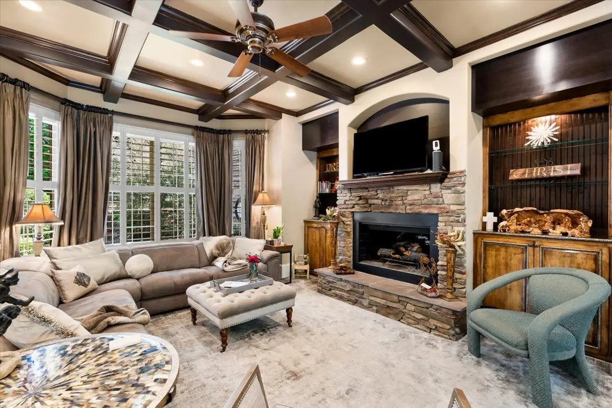 Welcome to this Extraordinary Executive Estate Located in the Gated Community of Camden Falls! This Home Offers 4700+ Sq. Ft of Living Space Spread Across Two Levels Boasting BOTH Main Lvl & Upper Lvl Primary Suites! No Attention to Detail has Been Overlooked! Dramatic Two Story Entry w/Rich Hardwoods Opens Up to a Formal Grt Rm w/Coffered Ceilings, Stacked Stone FP, Built Ins + Surround Sound! Oversized DR, Office & Chefs Kitchen w/Abundant Countertop, Cabinetry, Walk In Pantry, Stunning Granite, & Custom Tin Ceiling! Brkfast Rm Area Off Kitchen + Keeping Rm w/Stacked Stone FP & Great Views of the Private Yard/Patio! Breathtaking Primary Suite w/Luxury Bth & Walk in Closet + Shoe Closet! Upper Level Has 2nd Primary Suite w/Full Ensuite Bath! Cozy Theater Rm w/Double French Drs, Office Nook + 2 More Bedrooms + Bonus Rm/5th Bedroom! Upper/Lower Lvl Laundry Rms! Designer Lgt Fixtures! Abundant Walk In Storage! Side Load Oversized 3 Car Garage w/Unlimited Storage!