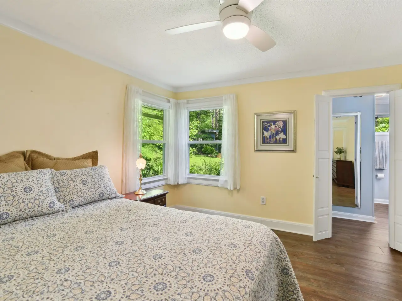 Serenity Place: A Lakeside Escape Surrounded by Nature's Beauty. Discover the perfect blend of privacy and natural splendor at this extraordinary lakeside estate. Set on over 10 acres of lush, wooded grounds with more than 400 feet of pristine shoreline, this retreat offers the ultimate sanctuary just minutes from downtown Greenville. Fall colors explode across the landscape, and the gentle sounds of water and wildlife create a serene, peaceful backdrop every day. The main residence features 4 spacious bedrooms and 4 full bathrooms, with breathtaking lake and forest views from nearly every room. The living room, centered around a grand fireplace, invites cozy evenings, while the dining room frames meals against stunning natural vistas. Step outside to expansive decks or your private dock - perfect for kayaking, fishing, or simply soaking in the tranquility of the lake. A charming artist's cottage tucked among the trees provides a quiet haven for creative pursuits, meditation, or guests. As the sun sets, gather around the fire pit patio and let the sounds of water and rustling leaves set the tone for unforgettable nights under the stars. Meander along winding paths and immerse yourself in the vibrant sights and sounds of nature. From morning coffee on the deck to golden-hour strolls along the shoreline, every moment at this property invites you to slow down, savor the serenity, and enjoy a lifestyle where every day feels like a retreat.
