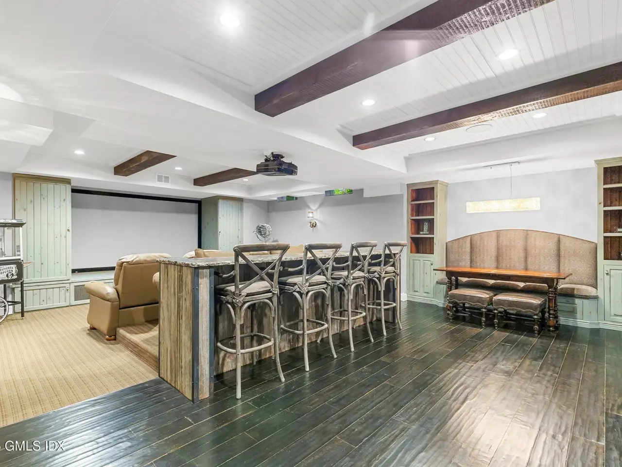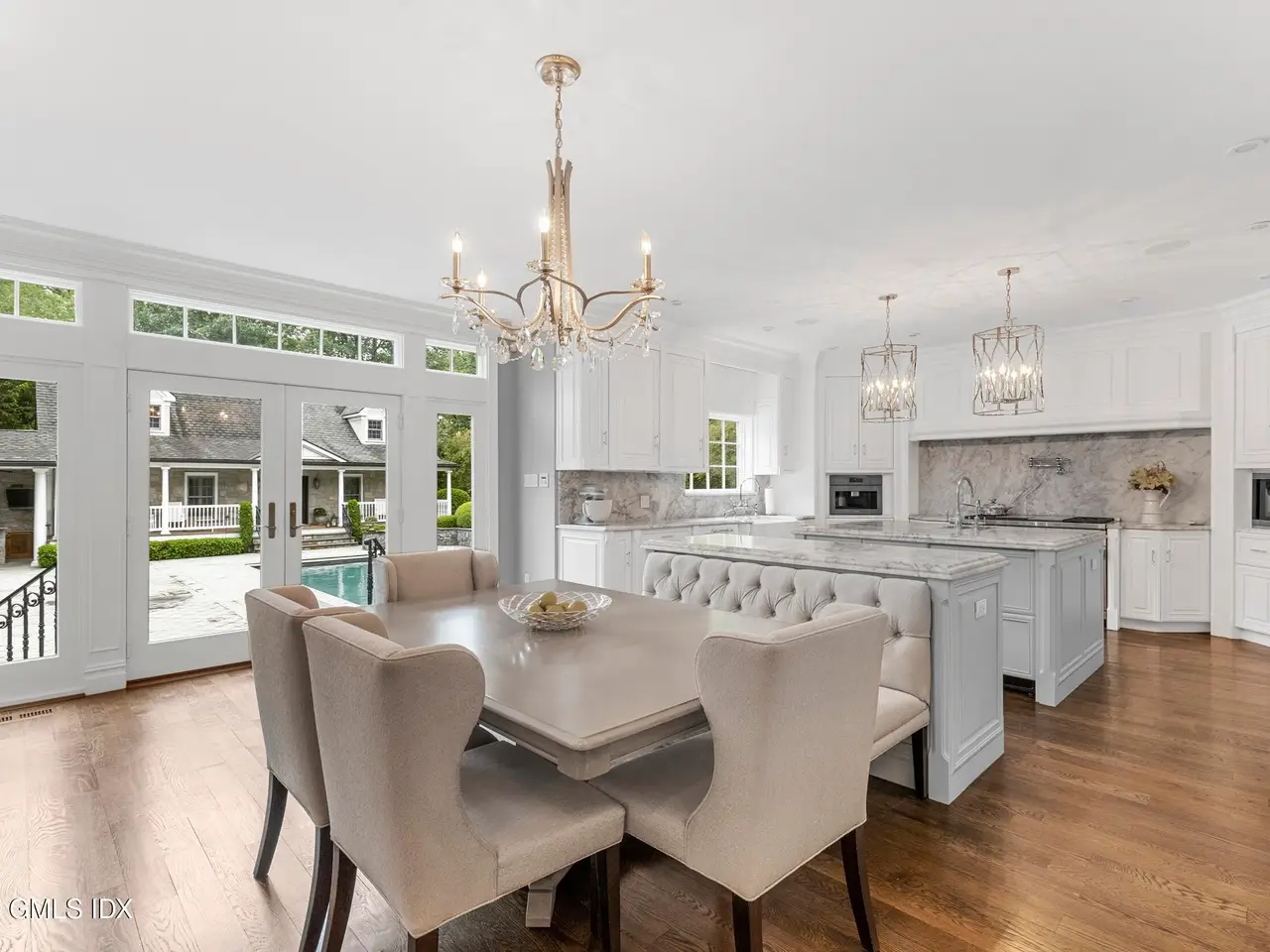 A rare offering in back-country Greenwich, this timeless estate is set on 3.58 exquisitely landscaped and gated acres, masterfully blending classic architecture with contemporary luxury. Designed for both grand-scale entertaining and intimate everyday living, the residence offers a sun-filled interior with soaring ceilings, custom millwork, and modern, bespoke finishes throughout. The grand foyer of this center hall colonial sets the tone for elegant, refined living. The gourmet marble kitchen opens to a multi-exposure family room with sweeping views of the manicured yard, pool, and fully equipped outdoor kitchen.The grounds are equally captivating, with a tranquil koi pond enhancing the natural beauty of the landscape. The luxurious primary suite with sitting area, spa-inspired bath, and three walk-in closets is among five second-level bedroom suites, each offering exceptional privacy and comfort. A versatile second-level suite with private entrance currently functions as a private gym but can effortlessly serve as an au pair suite or guest quarters.The thoughtfully executed lower level is fit with a theater, bar, wine cellar, and recreation spaces. The pool house extends the living experience with two additional bedrooms and two full baths-set amidst expansive patios and a lush, tree-lined lawn.Located just minutes from town, schools, and 45 minutes to Manhattan, this meticulously designed compound offers a rare blend of serenity, sophistication, and convenience.