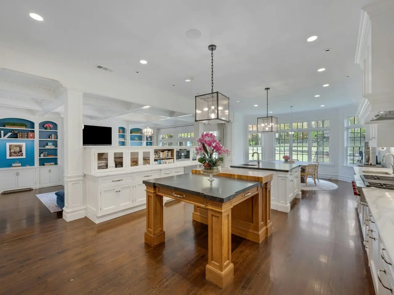 Tucked away on over seven quiet acres off prestigious Round Hill Road, this private estate offers a serene blend of luxury, space, and style. The main residence is complemented by a beautiful pool/guest house designed for effortless entertaining and resort-style living. At the heart of the home, a Christopher Peacock kitchen showcases statuary marble countertops and backsplash, double islands, and professional-grade appliances, all centered around a custom command station with built-in desk and storage. The kitchen opens seamlessly to a sun-filled family room with bespoke cabinetry, creating the perfect setting for relaxed gatherings. The first floor also features a front-to-back living room, elegant dining room, inviting home office, and private en-suite guest suite. The second floor features four spacious en-suite bedrooms, including a luxurious primary suite with two spa-inspired primary bathrooms and two expansive walk-in closets. A large laundry room and recreation/family room complete this level, offering flexibility for work, play, or relaxation. The lower level is fully finished and thoughtfully designed with a game room, lounge, gym, and media room, providing abundant space for leisure and entertaining. Outside, the resort-quality pool/guest house, designed in 2017 by renowned Greenwich designer Susan Alisberg, sets a new standard for leisure. A folding Nano wall blurs the lines between indoors and out, revealing a vibrant kitchen with snack bar and stylish lounge that open to the bluestone-surrounded pool. Whether hosting summer soires or unwinding in the evening breeze, this is an entertainer's paradise. Additional highlights include a Savant whole-house sound system, three-car garage, and 40-kW Cat generator. A rare offering combining timeless design, modern comfort, and absolute privacy in one of Greenwich's most coveted locations.