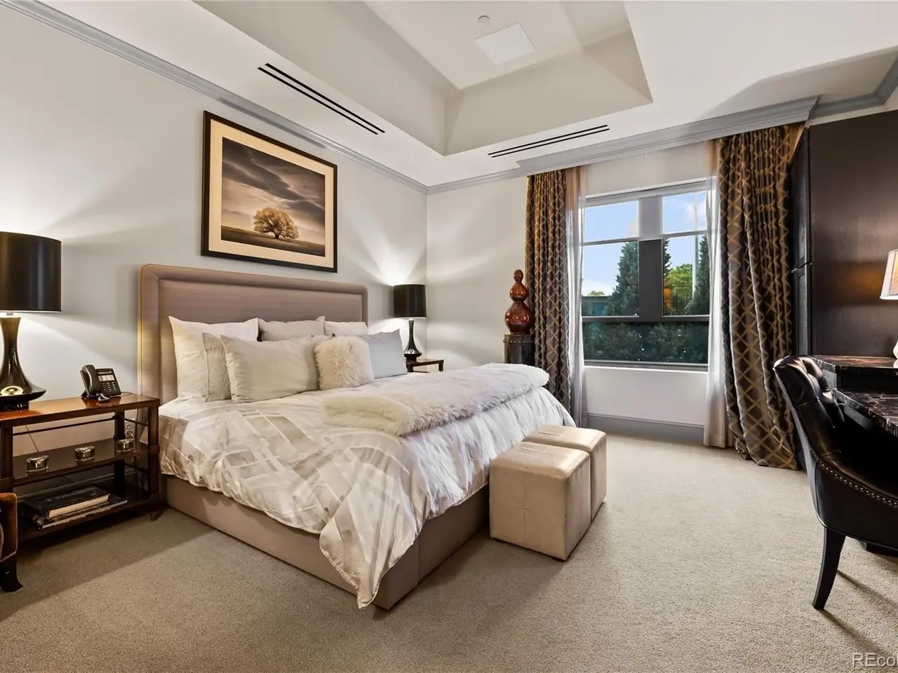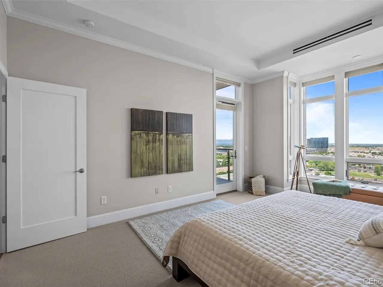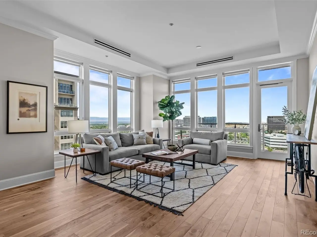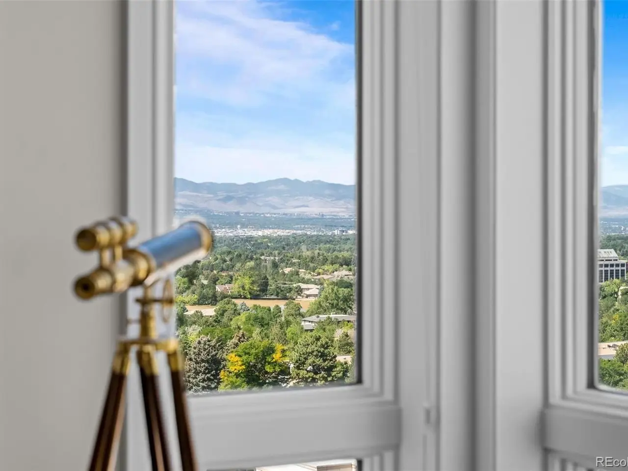 A Sophisticated Retreat with Breathtaking Views at The Landmark. Gracefully positioned on a coveted corner, this exceptional 2-bedroom, 2-bath residence at The Landmark is awash in natural light and framed by sweeping mountain and city vistas. Encompassing over 1,500 square feet of thoughtfully designed living space, the home exudes timeless elegance with soaring 10-foot ceilings, a welcoming stone-tiled foyer, rich hardwood flooring, and fresh designer paint throughout. The kitchen is both functional and refined, featuring a generous island with seating for four to five, seamlessly connecting to the expansive living and dining areas—ideal for effortless entertaining. The primary suite is an inviting sanctuary with panoramic views and direct access to a spacious, covered patio that also adjoins the main living area, offering a perfect setting for indoor-outdoor living. Additional conveniences include two assigned garage parking spaces and a storage unit. The Landmark redefines luxury living with a host of curated amenities designed for comfort, wellness, and community. From concierge and front desk services to serene patios with tranquil water features, toasty fire pits, every detail has been thoughtfully considered. Indulge in the spa experience with sauna and steam rooms, unwind in the club room with a full catering kitchen, or explore creative pursuits in the craft room and library. Wine connoisseurs will appreciate a temperature controlled wine storage room, while the media room offers the perfect escape for cinematic evenings. Just outside your doorstep, a world of convenience awaits: fine dining, boutique shopping, fitness studios, and a luxury cinema, all within a short stroll. With easy access to scenic trails, lush parks, and the natural beauty of Cherry Creek Reservoir, The Landmark offers an extraordinary lifestyle where sophistication meets simplicity.